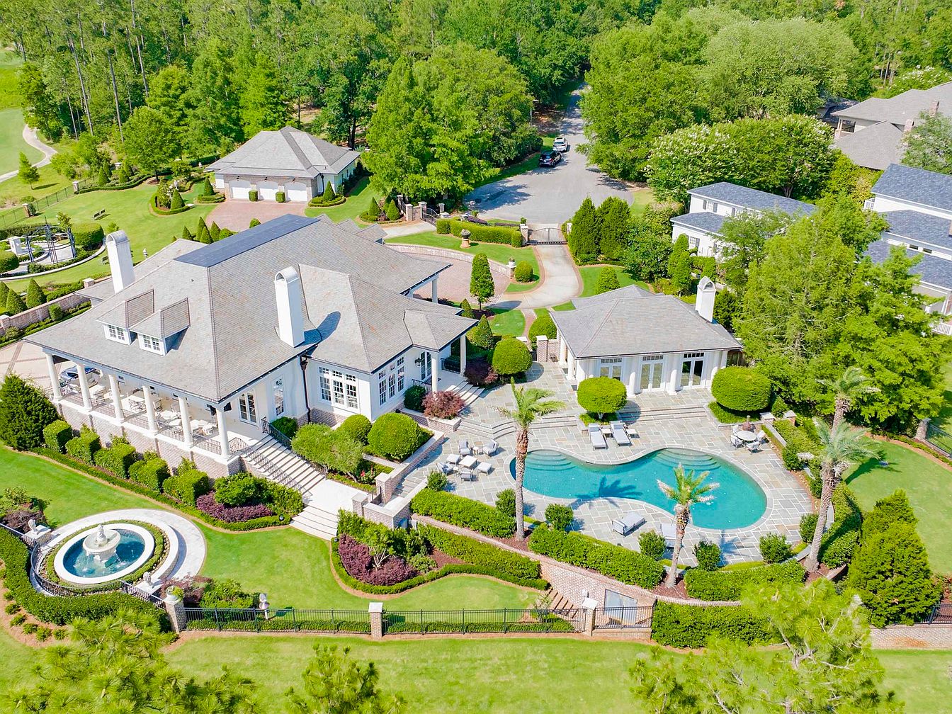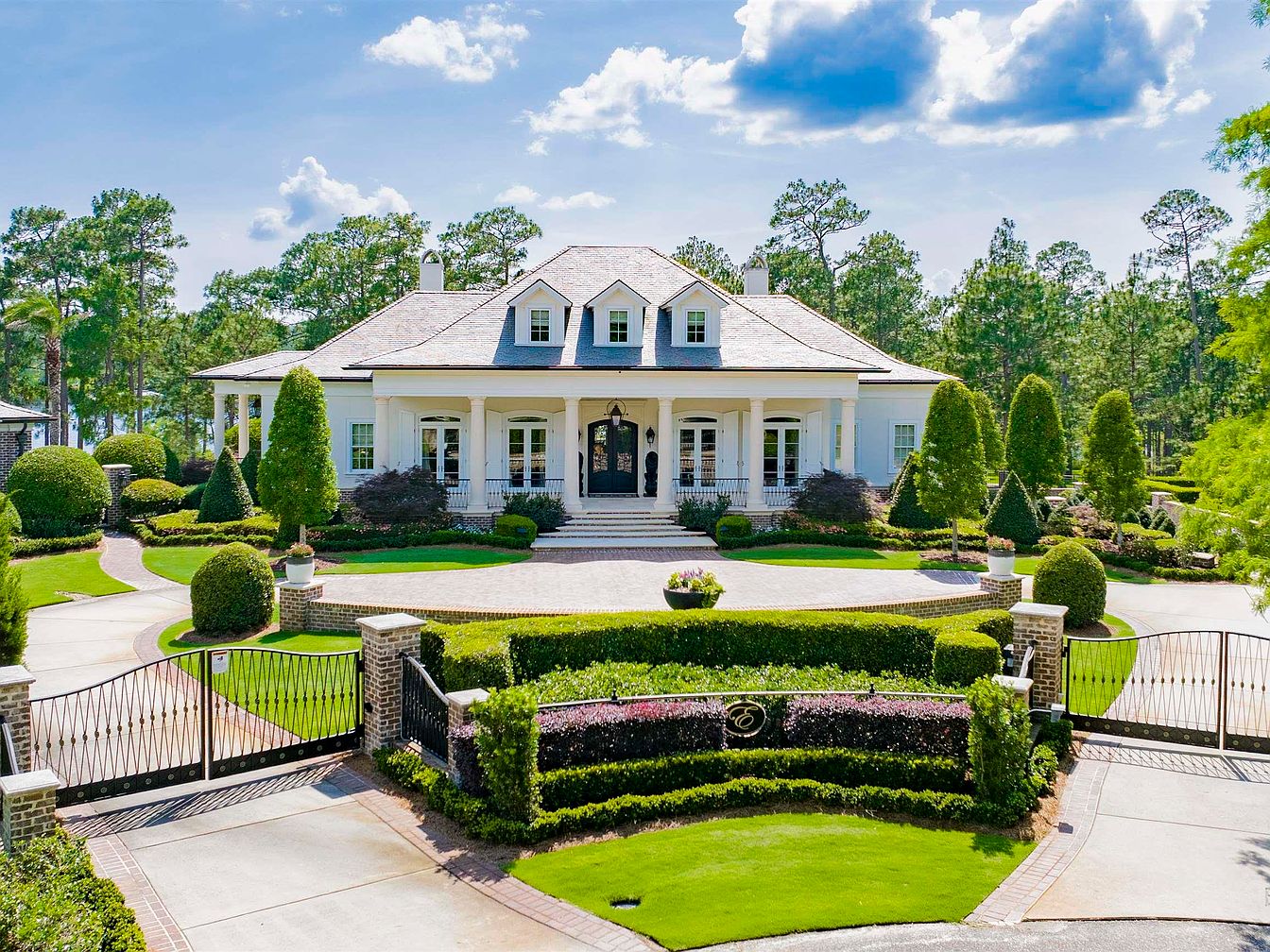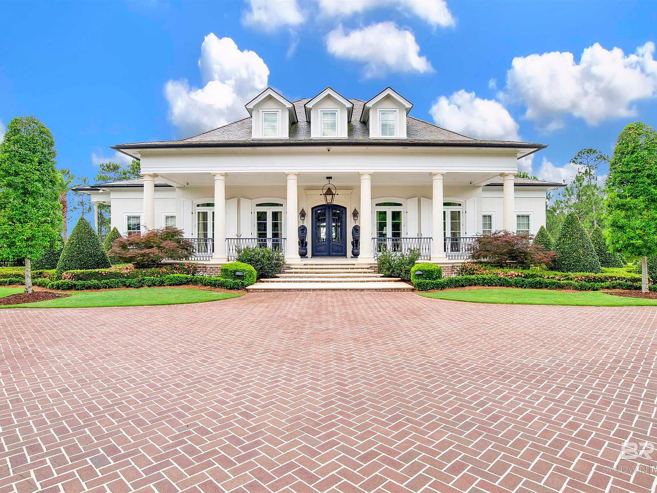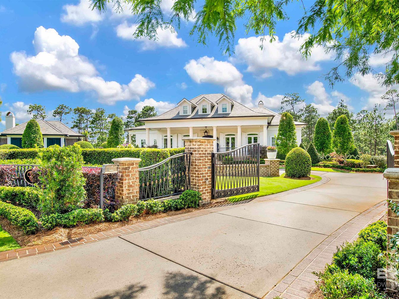 Nestled in a prestigious Country Club community between Pensacola, FL, and Mobile, AL, this exquisite 5-bedroom home offers a unique blend of luxury and leisure. Built with elegance in mind, the 3,300 sq. ft. estate showcases architectural sophistication with marble and oak flooring, a gourmet kitchen featuring WOLF and Subzero appliances, and stunning views of Steelwood Lake and an award-winning golf course. Recent renovations include an expansive pool deck and updated guest suites. Priced at $11,700,000, the property spans three lots, complete with a separate garage, pool house, and extensive landscaping, ensuring the utmost privacy and comfort, making it an ideal retreat for relaxation and entertaining.