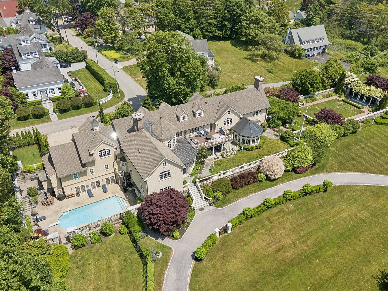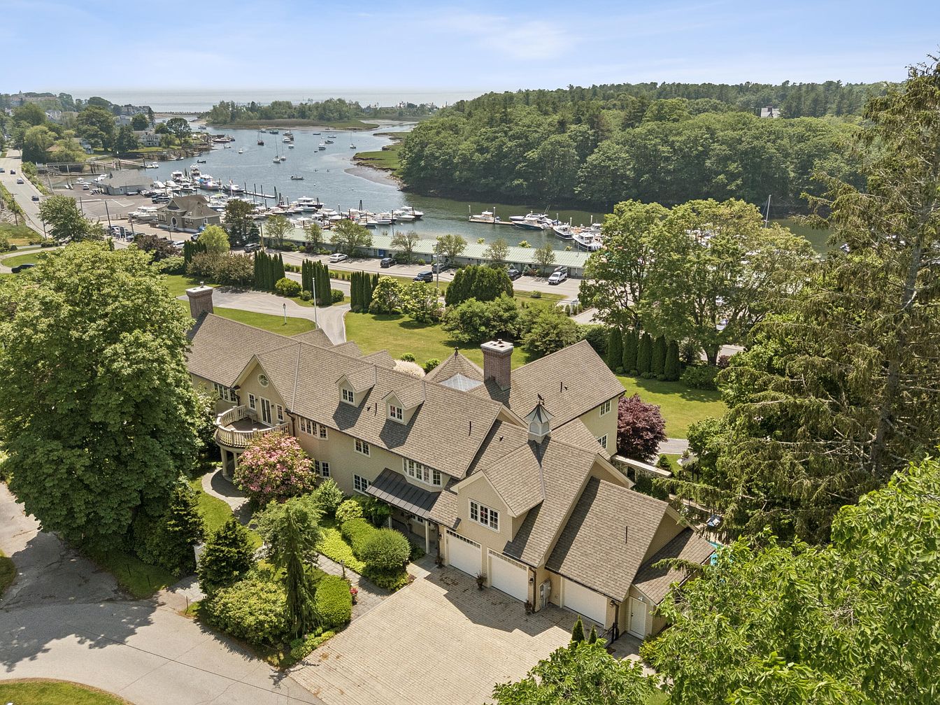 Harbor Watch is an elegant century estate in Kennebunkport, Maine, known for its distinguished historical significance and timeless architecture, blending classic charm with modern luxury. Set on 2.2 private acres with panoramic views of the Kennebunk River and the Atlantic Ocean, this home features a gracious shingle-style facade, manicured lawns, an in-ground pool, and patios drawing inspiration from historical New England estates. While the exact build year is not specified, it incorporates original stone walls from the historic Stone Castle and has undergone recent renovations including a state-of-the-art kitchen, marble-floored entry, and luxury amenities such as a gym with sauna. Listed at $9,998,000, the property offers privacy, beauty, and proximity to Kennebunkport Village, making it a truly rare and spectacular offering.