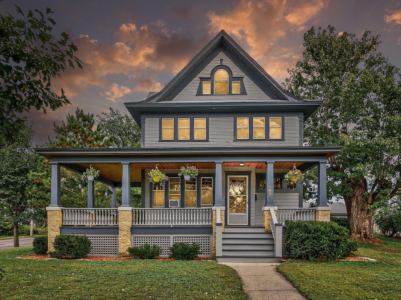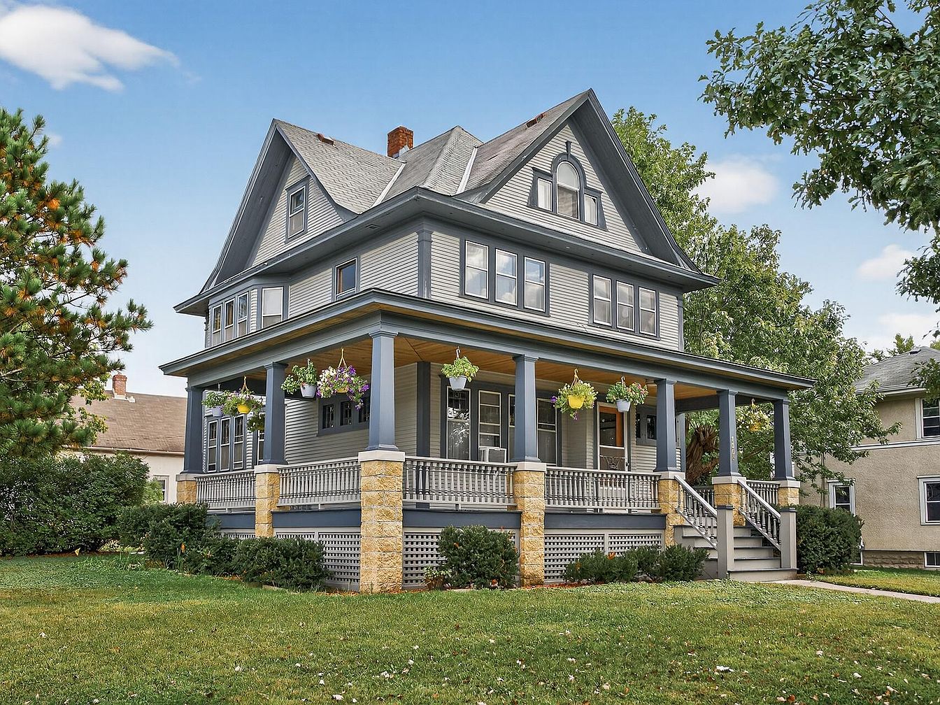 Built in 1914 and steeped in historic charm, this beautifully preserved home on the shores of Lake Como in Saint Paul, MN offers an ideal family retreat. Its timeless farmhouse architecture features original woodwork, leaded-glass windows, hardwood floors, and inviting built-ins. Perfectly positioned on an oversized corner lot just steps from Como Park and lake trails, it includes a spacious wraparound porch with enchanting lake views. Recent updates to the farmhouse kitchen blend classic style with modern convenience, while versatile, sunlit bedrooms and a finished lower level provide ample space for family activities. Listed at $664,900, with a two-car garage, patios, and generous entertaining areas, this is a rare opportunity to own a treasured piece of Lake Como history.