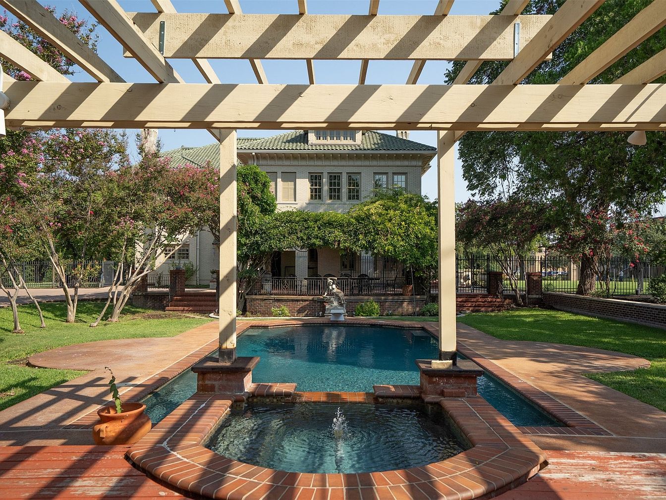 This historic Italianate masterpiece, located at the East end of Elizabeth Blvd in the heart of Ryan Place, Fort Worth, TX, offers 5,753 sq ft of elegant family living with an additional 784 sq ft finished basement and a private 702 sq ft guest house. Admired for generations and featured in prestigious designer tours and magazines, its sculptural arches, green terra cotta columns, marble-floored entry, and grand living spaces evoke fairytale charm and comfort. The beautifully appointed home boasts five bedrooms, luxurious baths, and plush living areas—ideal for family life. Outside, the lush backyard, pavilion, covered patio, and sparkling pool make it perfect for entertaining. Priced at $2,800,000, this is a rare opportunity to own a true piece of architectural history.
