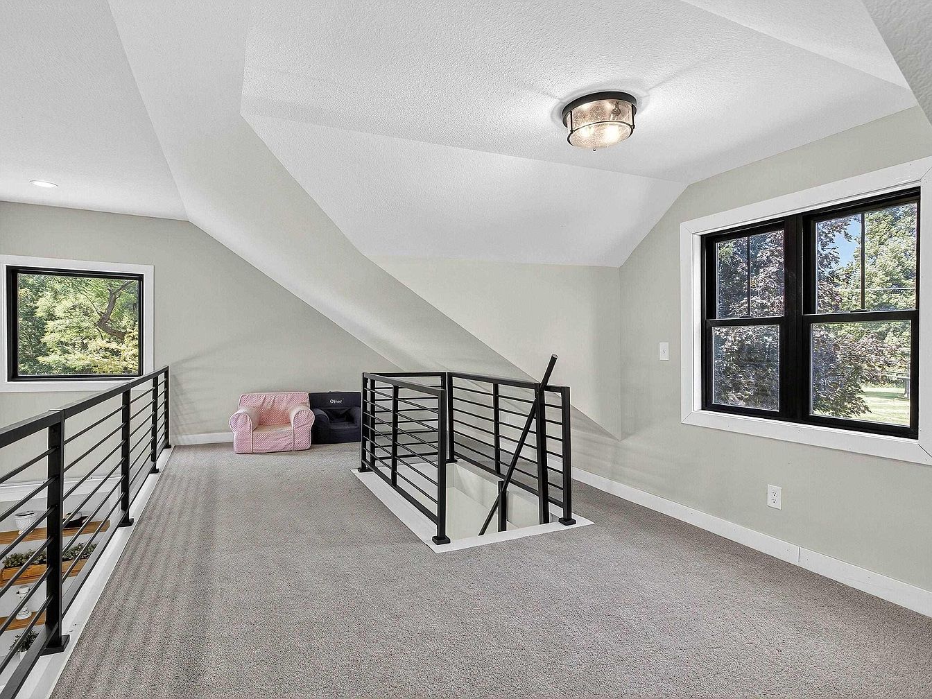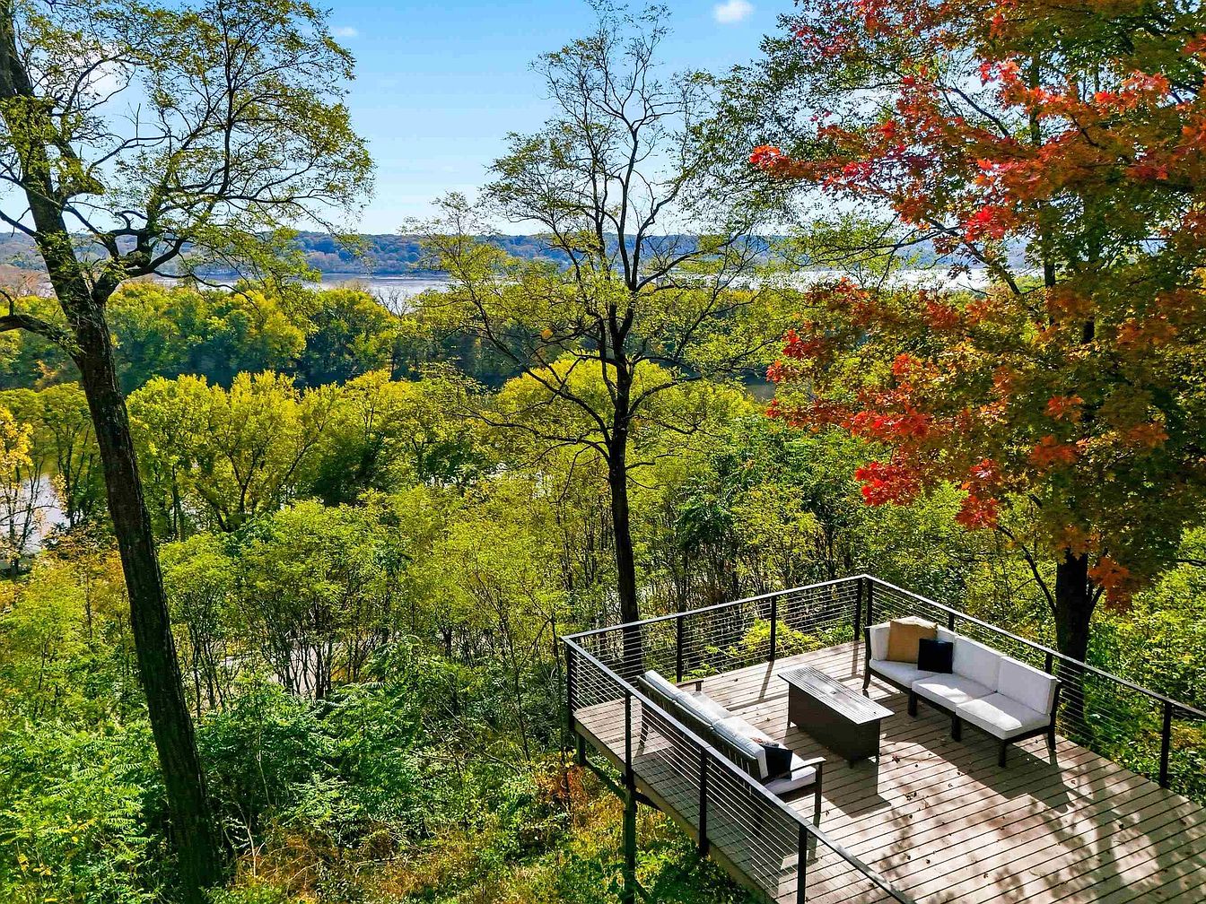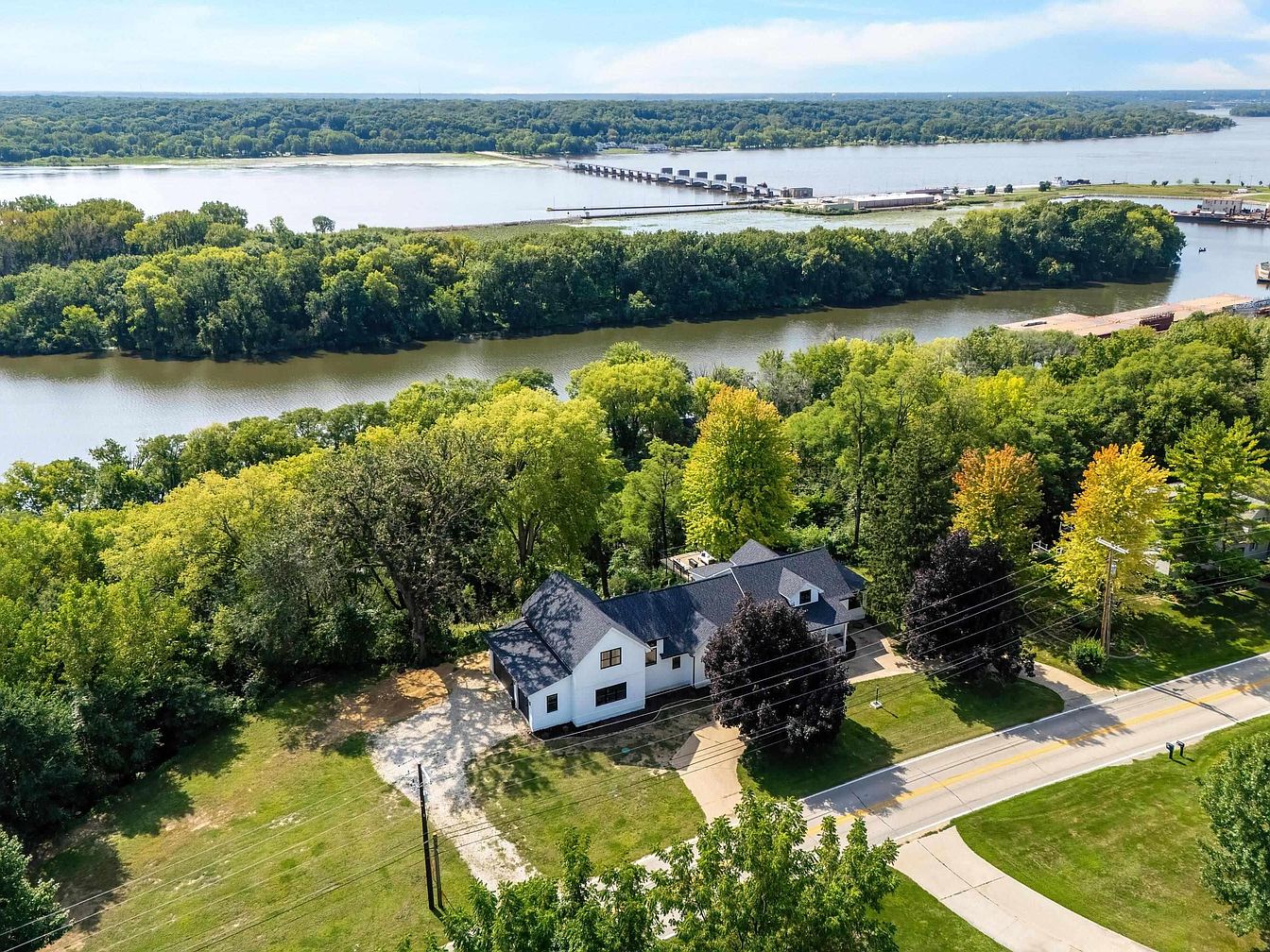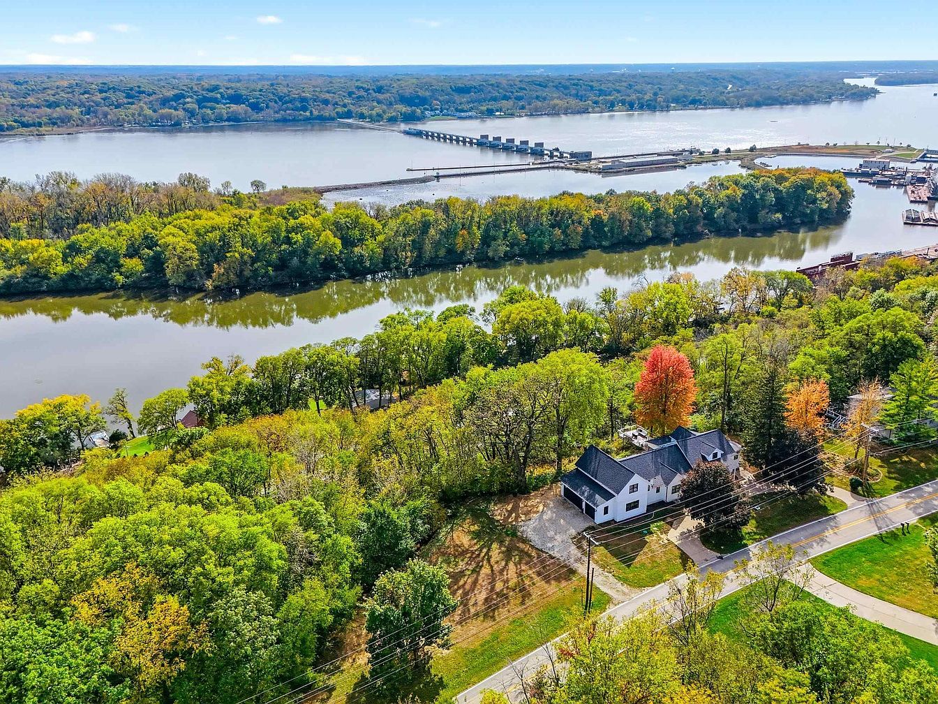 Located in Bettendorf, Iowa, and affectionately known as “The Lion House,” this century home boasts a rich historical legacy, originally built in 1924 as a charming bungalow before undergoing a transformative renovation and expansion in 2022/2023. Perched on a 1.6-acre wooded lot with breathtaking views of the Mississippi River and LeClaire Canal, the property blends timeless architectural character—highlighted by its inviting covered porch and lion statues—with modern luxury, including new roofing, windows, HVAC systems, and a showpiece kitchen with quartz countertops. Offering nearly all-new interiors, four bedrooms, a distinctive loft, two decks with water views, and a temperature-controlled garage, this exceptional home is listed for $1,125,000 within the desirable Pleasant Valley School District.