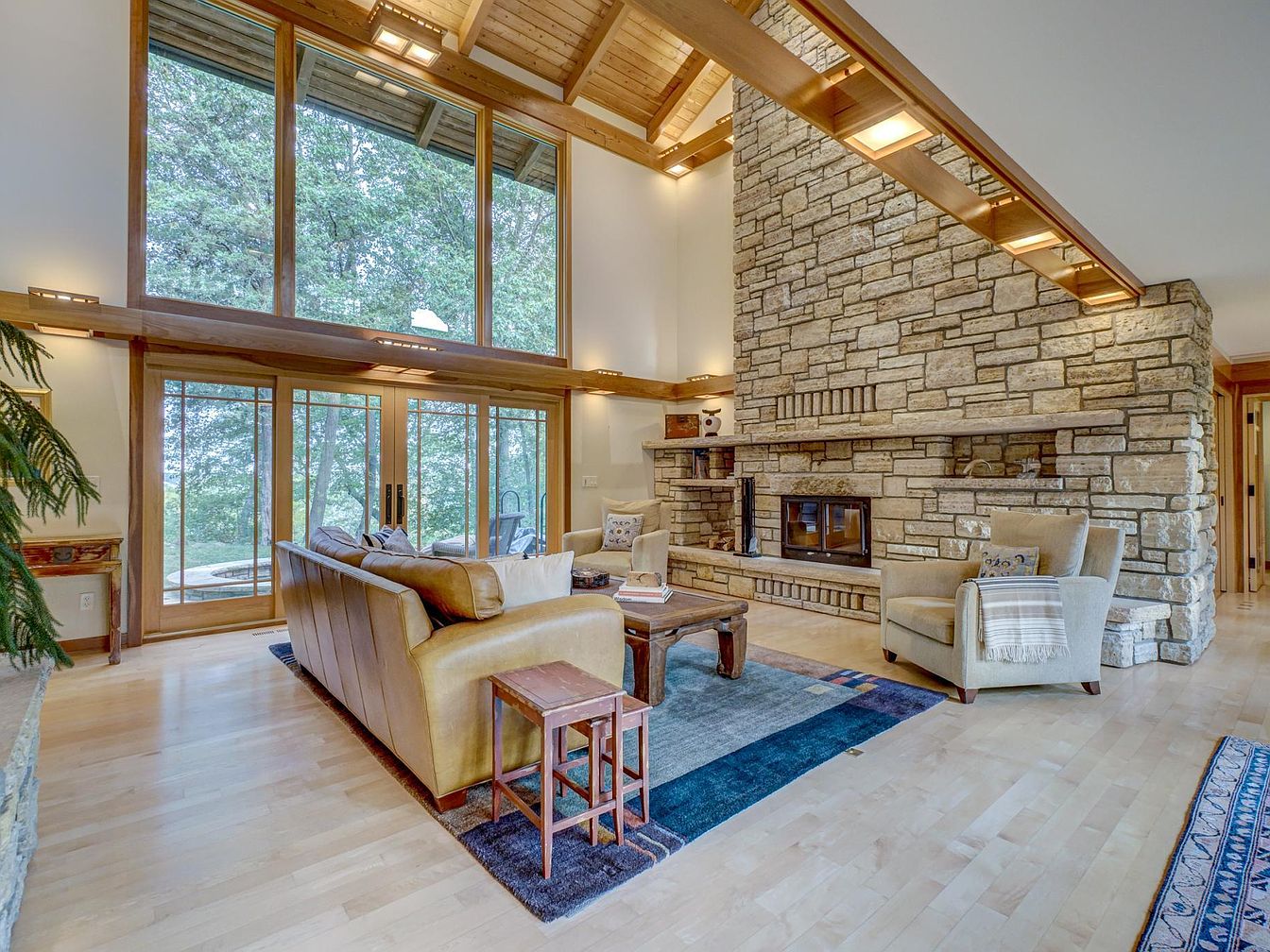 Heartwood Bluffs is a historically significant estate in Marine On Saint Croix, MN, renowned for its refined custom craftsmanship and the legacy it offers. Masterfully built by Hagstrom Builders, this architecturally stunning home exemplifies luxury Prairie-style living with timeless hardwoods, exposed beams, expansive windows, and artisan stonework. Designed with families in mind, it offers serene privacy on 26 acres with 442 feet of sandy shoreline, complemented by amenities like a sunroom, gourmet kitchen, home theater, meditation room, and in-law suite. Lush Japanese gardens, a koi pond, barn, greenhouse, and horse stalls make it ideal for recreation and equestrian pursuits. Recently renovated, this 3.49M estate offers unmatched legacy living in a coveted Twin Cities locale.