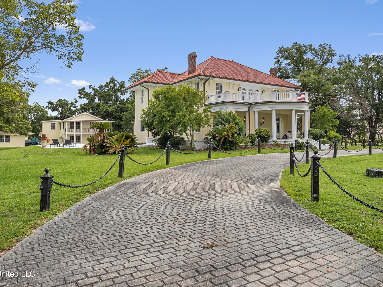 This historic beachfront property in Pass Christian, MS, built in 1920, showcases a stunning blend of Mediterranean Revival and Southern Colonial architectural styles. Originally crafted for prominent New Orleans families, it later served as the Kern School in the 1950s and hosted notable political figures and celebrities. Recently renovated, it offers modern luxury within its 6,500 square feet, including a new kitchen and multiple living spaces, all set on nearly 2 acres of lush grounds. Priced at $4,200,000, the home features unique elements like a wine cellar and multiple outbuildings, all surrounded by breathtaking Gulf views, combining historical significance with contemporary opulence.