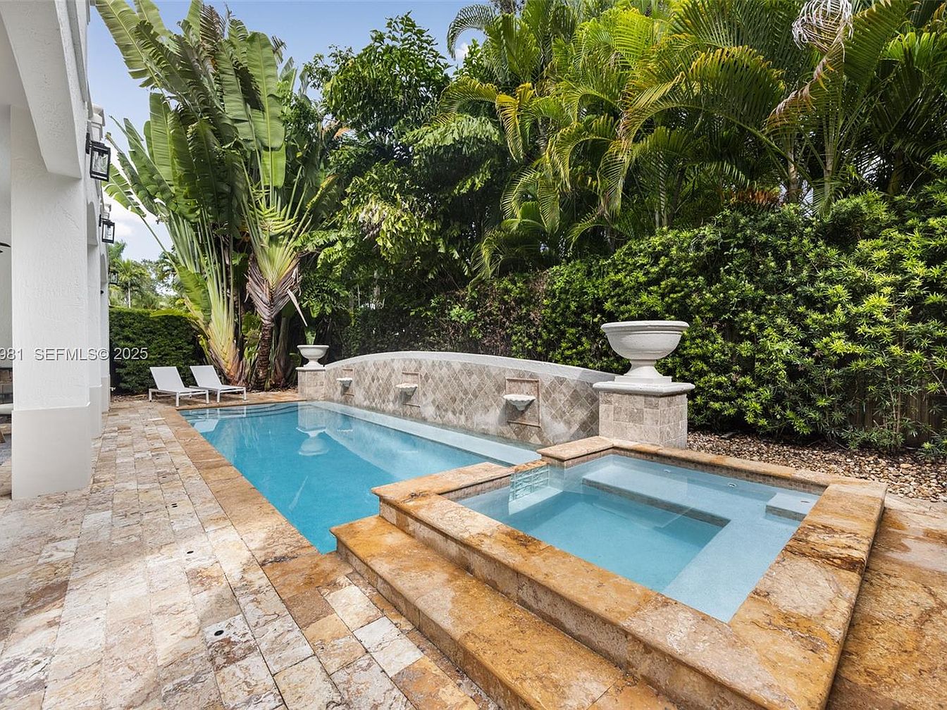 This stunning Mediterranean-inspired home in South Coconut Grove, Miami, exemplifies luxury living with its seamless indoor-outdoor design. Built recently, this two-story retreat includes a spacious main level anchored by a dramatic central staircase, featuring a vaulted living room and chef’s kitchen, ideal for entertainment. The lush backyard boasts a pool with fountains and a summer kitchen, perfect for outdoor gatherings. The expansive primary suite on the upper floor includes dual walk-in closets and a spa-like bath. Listed at $3,600,000, the property spans an impressive plot area, offering total square footage that enhances its grandeur. Recent renovations reflect timeless elegance, making it a true Grove haven.
