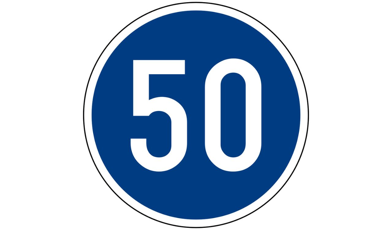 We are conditioned to think red circles mean “Don’t,” but we often ignore the secret language of the blue circle, which screams “Do.” This sign, featuring a white number on blue, is not a friendly recommendation to keep moving; it is a Mandatory Minimum Speed Limit. We included it because the “slow is safe” myth gets shattered here. In tunnels or high-speed zones, dropping below this number without cause is a punishable offense. The sign reveals a hidden truth of traffic physics: on these specific roads, a slow driver is statistically more likely to cause a pile-up than a fast one.