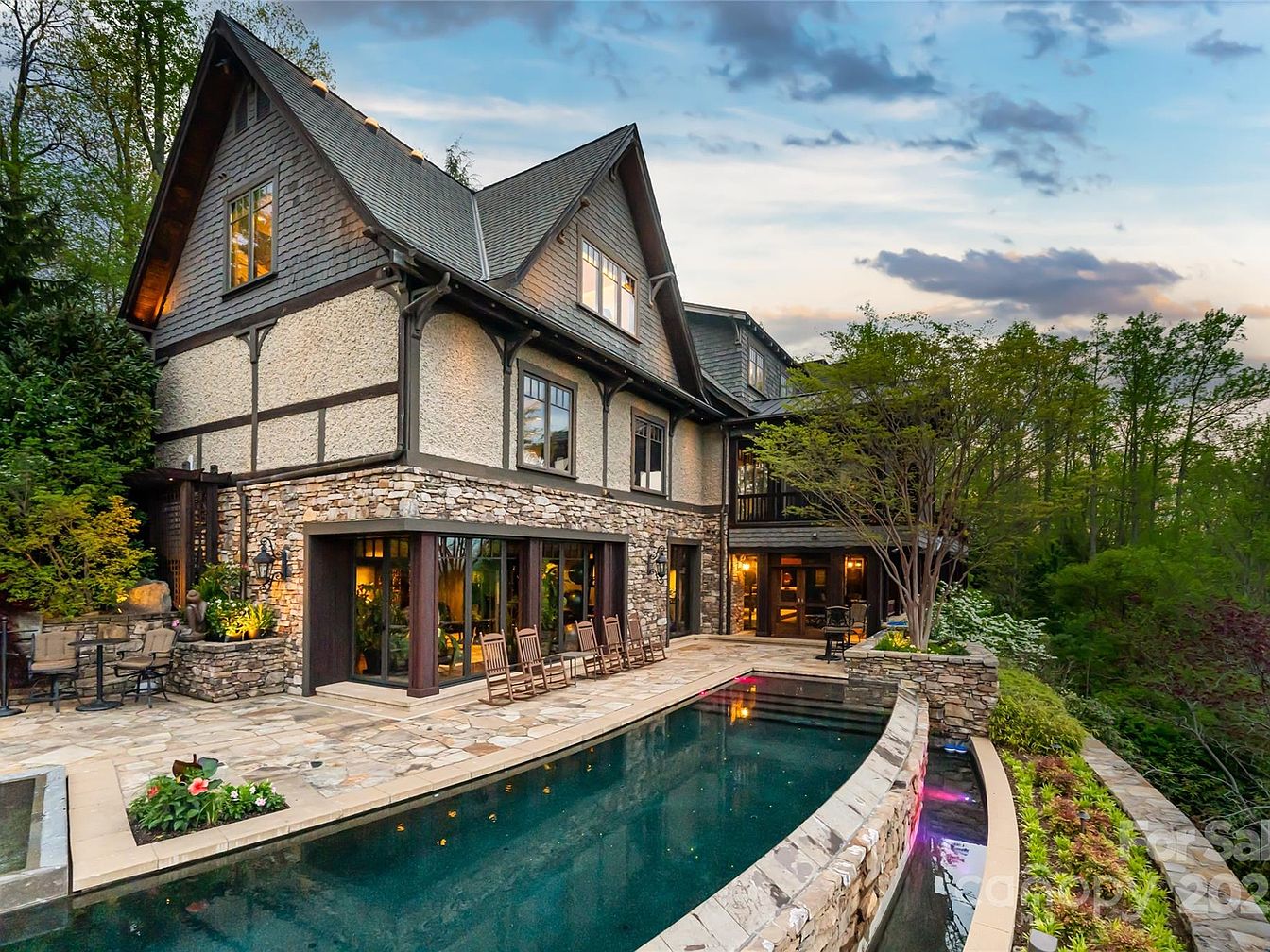 Deerhaven Gardens in Asheville, NC, is a 13,000-square-foot estate seamlessly blending luxury, wellness, and natural beauty, a sanctuary embodying refined mountain living. Though modernized, its design borrows from historic Tudor and Craftsman traditions with timber beams, stonework, and expansive NanaWall doors that open fully to panoramic mountain vistas and over 5 landscaped acres, perfect for families seeking tranquility, recreation, and space. Six bedrooms, a bunk room, and resort-like wellness amenities, including sauna, gym, and spa suite, cater to multigenerational family life, while two gourmet kitchens, a wine cellar, and infinity-edge pool are ideal for entertaining. Award-winning gardens, wooded trails, tennis facility, and recent renovations ensure comfort and prestige, offered at $15,900,000.