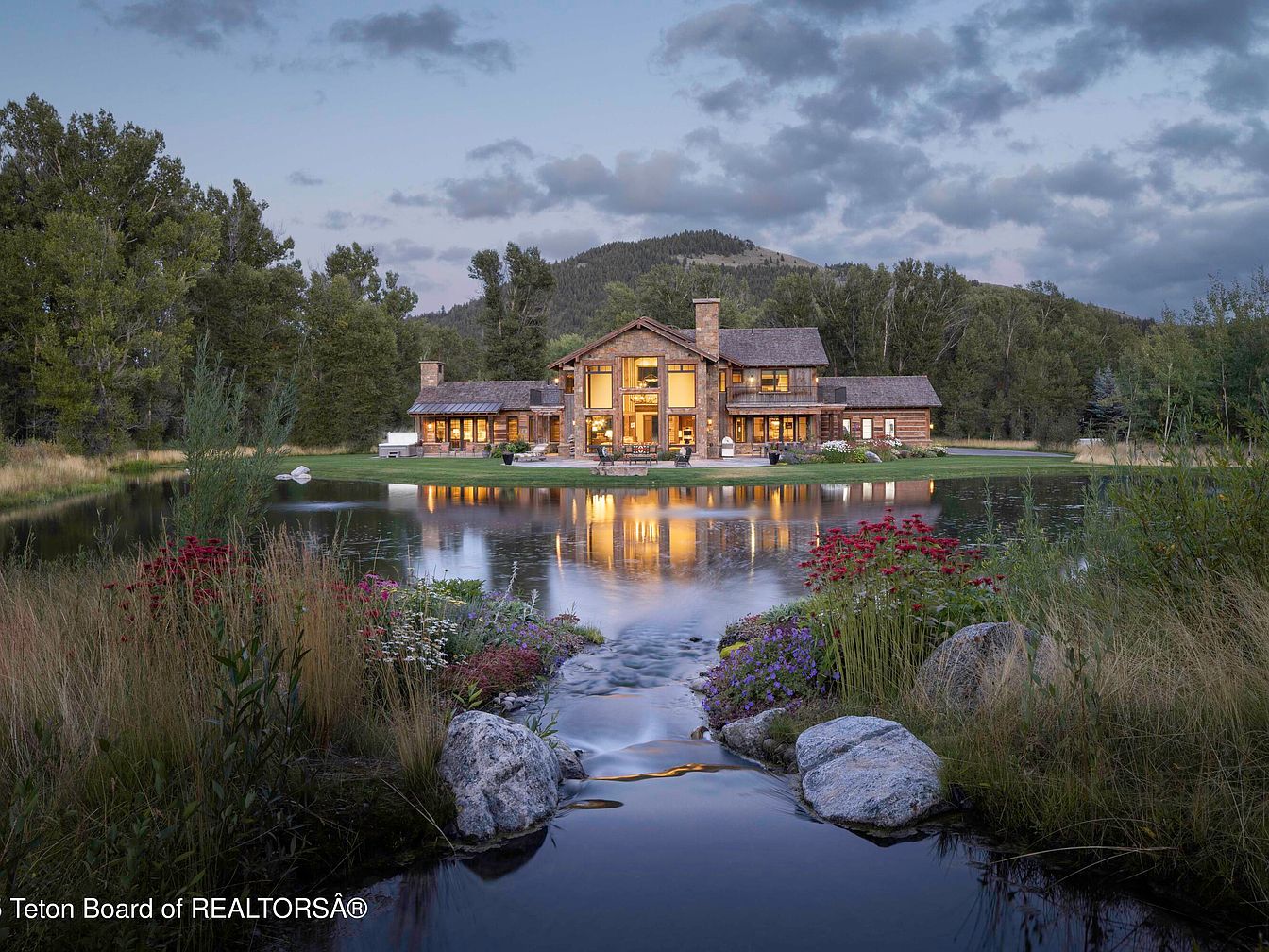 $18M Mountain Retreat in Wyoming Featuring Antique Timbers, Expansive Views & a Stocked Trout Pond for Relax, Play & Adventure
