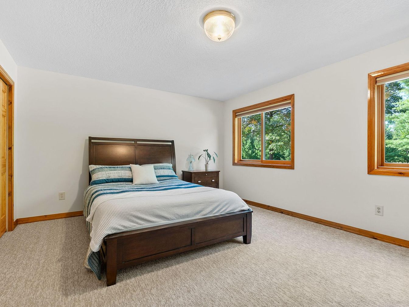 Nestled within 12.3 sprawling acres in Ham Lake, this extraordinary estate seamlessly blends modern architectural influences, highlighted by soaring 24-foot vaulted ceilings, floor-to-ceiling Marvin windows, and a signature Chicago tumbled brick fireplace—with family-friendly living. This four-bedroom, four-bath home, priced at $1,135,000, boasts private en-suites ideal for multigenerational families, an open gourmet kitchen, and abundant gathering spaces. Recent upgrades include a newly finished lower level and a 15,000 sq. ft. engineered driveway added in 2022, enhancing convenience and style. The property’s prime location offers serenity just minutes from suburban amenities. Featuring a 36’ x 60’ climate-controlled outbuilding, Old Hickory barn, perennial gardens, and a 1.2-acre private pond, it’s an unmatched sanctuary to live, work, and play.