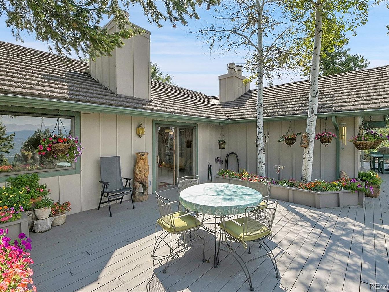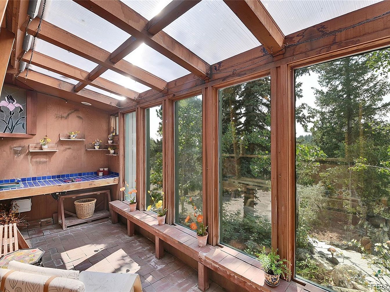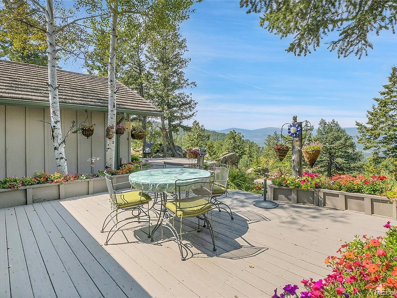 Nestled amid granite outcroppings in Evergreen, Colorado, this beautifully remodeled century home sits on a 2.5-acre hilltop plot, offering stunning snowcapped mountain vistas and unmatched privacy. Built to capture sweeping views and embody mountain charm, the home features a spacious, remodeled kitchen with alder cabinets, multiple living areas including a dramatic lofted beam ceiling, and a sunroom/greenhouse for garden enthusiasts. The expansive deck space, fenced gardens with irrigation, oversized garage with workshop, and plentiful storage enrich the serene mountain lifestyle. Recently updated, with high-speed internet and minutes from downtown Evergreen, this property is listed at $1,125,000, with an optional adjacent 3.95-acre lot available. Total square footage and year built are not specified.