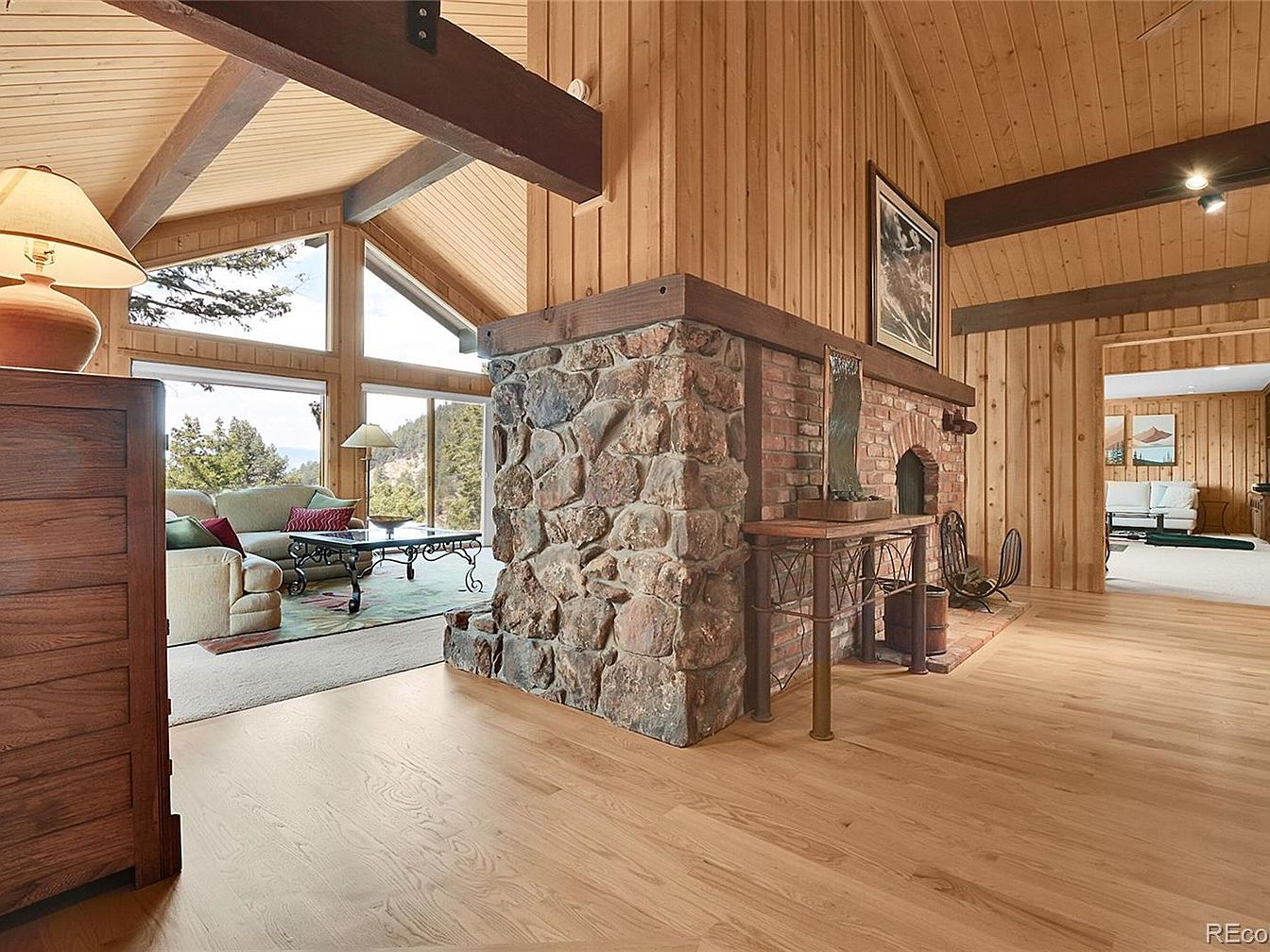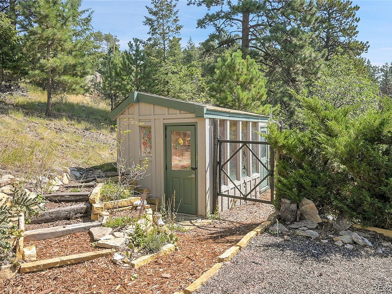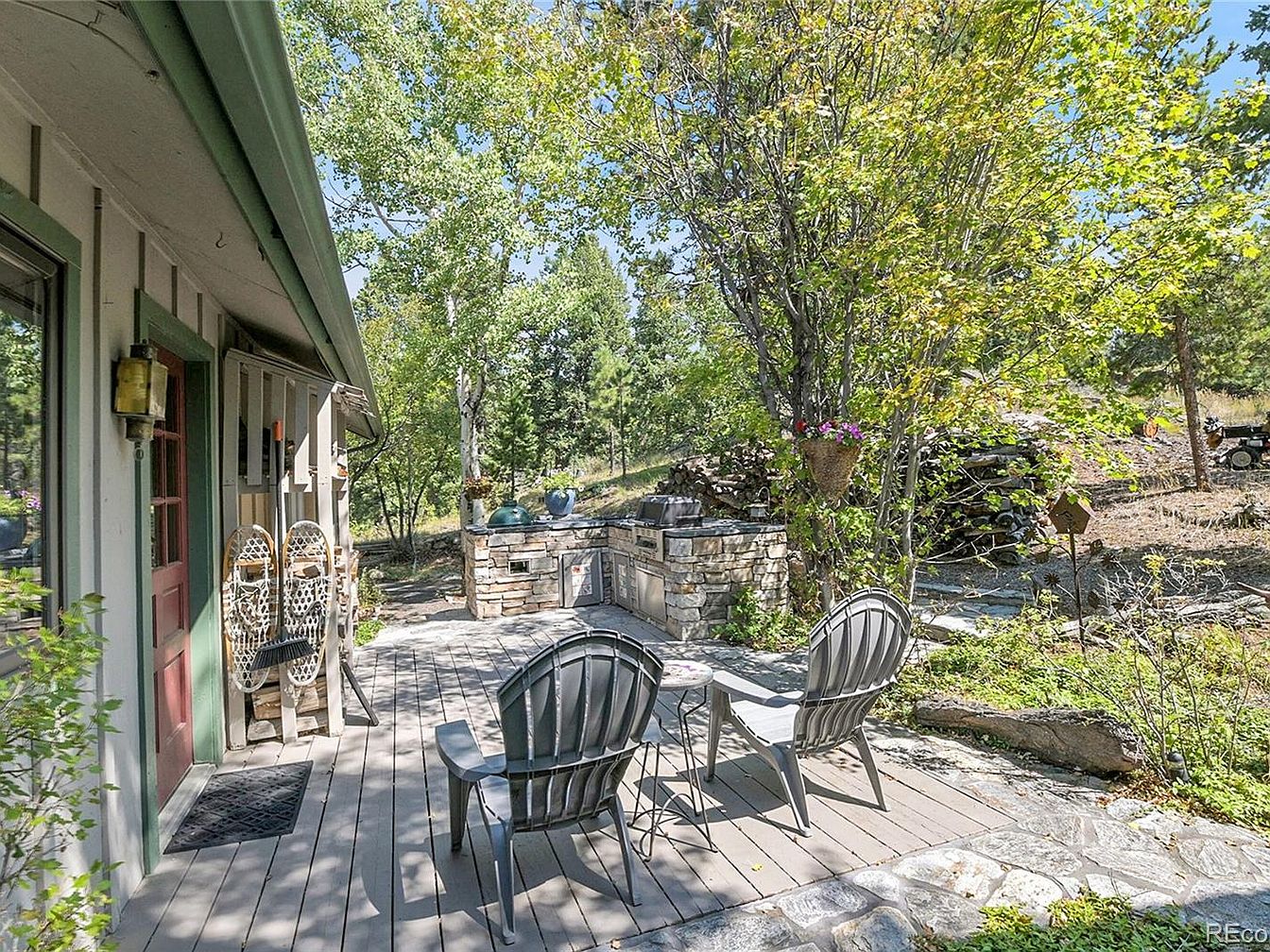 Nestled amid granite outcroppings in Evergreen, Colorado, this beautifully remodeled century home sits on a 2.5-acre hilltop plot, offering stunning snowcapped mountain vistas and unmatched privacy. Built to capture sweeping views and embody mountain charm, the home features a spacious, remodeled kitchen with alder cabinets, multiple living areas including a dramatic lofted beam ceiling, and a sunroom/greenhouse for garden enthusiasts. The expansive deck space, fenced gardens with irrigation, oversized garage with workshop, and plentiful storage enrich the serene mountain lifestyle. Recently updated, with high-speed internet and minutes from downtown Evergreen, this property is listed at $1,125,000, with an optional adjacent 3.95-acre lot available. Total square footage and year built are not specified.
