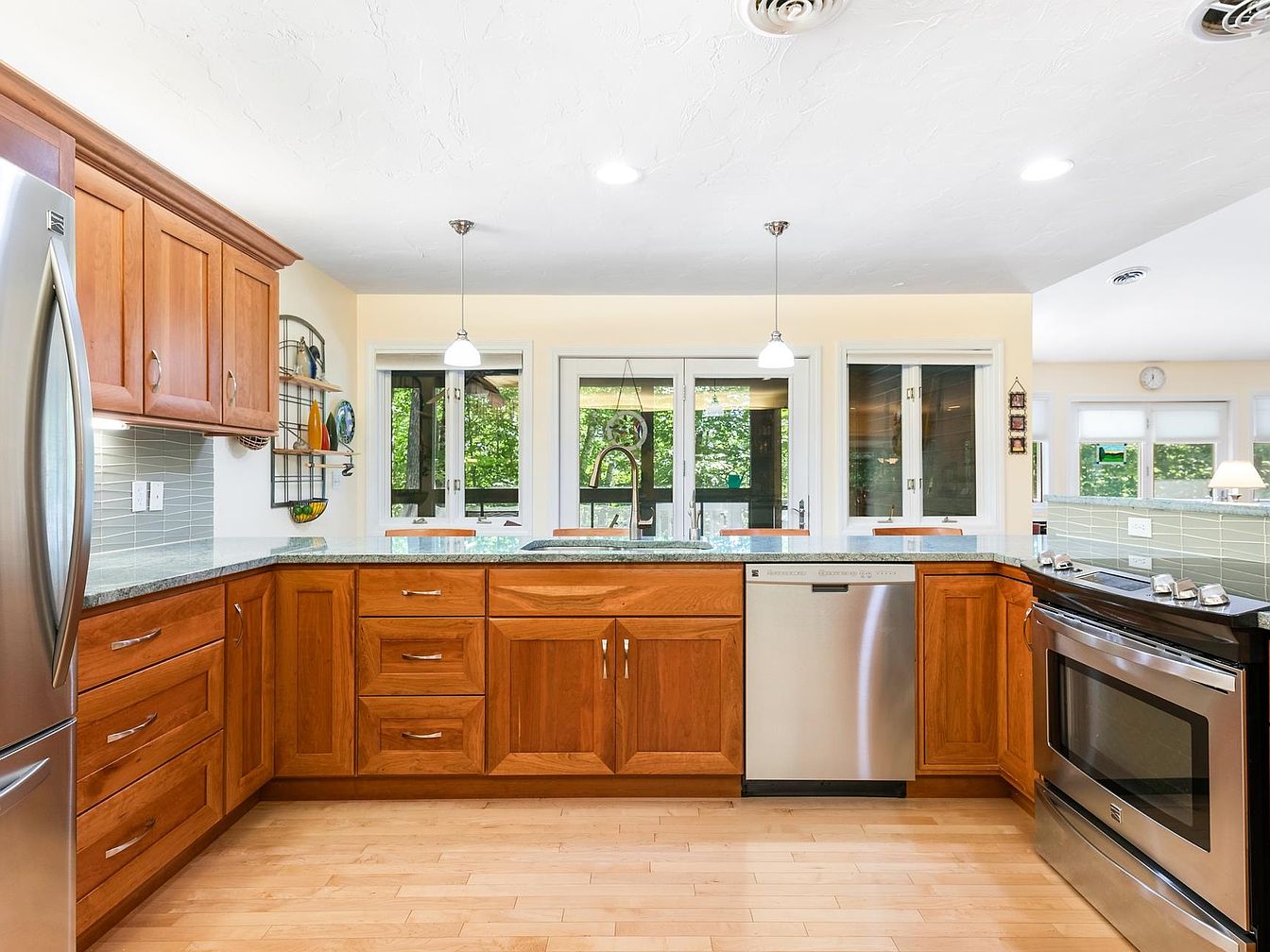 This stunning waterfront property in Eastman, NH, offers seasonal lake views and has been meticulously updated, showcasing modern amenities while preserving its charm. Built in the 20th century, the home features a contemporary open floor plan with a custom kitchen, spacious primary bedroom suite, and a finished lower level, all designed for comfort and accessibility. The architectural style blends rustic elegance with modern convenience, including radiant heat floors and handicap accessibility. Located in a coveted four-season community, it’s priced at $1,100,000, encompassing a generous plot area with an inviting outdoor space featuring a screened porch, deck, and hot tub, making it an idyllic retreat in the heart of the Dartmouth-Lake Sunapee Region.