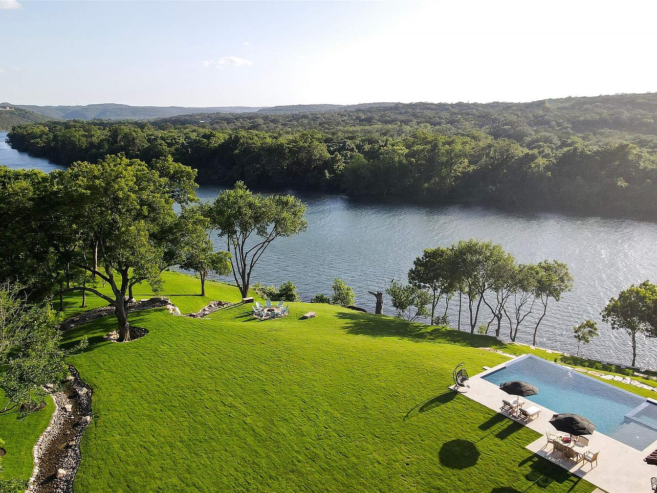 Bellagio Falls on Lake Austin is a stunning estate blending Texas ranch style with Santa Barbara elegance, offering a unique fusion of historical and modern elements perfect for family life. Built in 2018, this nearly 10,000 sq. ft. home features 6 bedrooms and 6.5 baths on a private, 6-acre plot, boasting 600 feet of Lake Austin frontage and tranquil waterfalls. Ideally located in Austin, Texas, it promises spacious family living and luxurious amenities, including a four-car garage, mesquite floors, a state-of-the-art media room, billiards, a resort-style pool, private orchard, and a two-story boat dock. Surrounded by majestic trees and greenbelt, with no visible neighbors, this $20,000,000 estate is recently updated and offers both privacy and style.