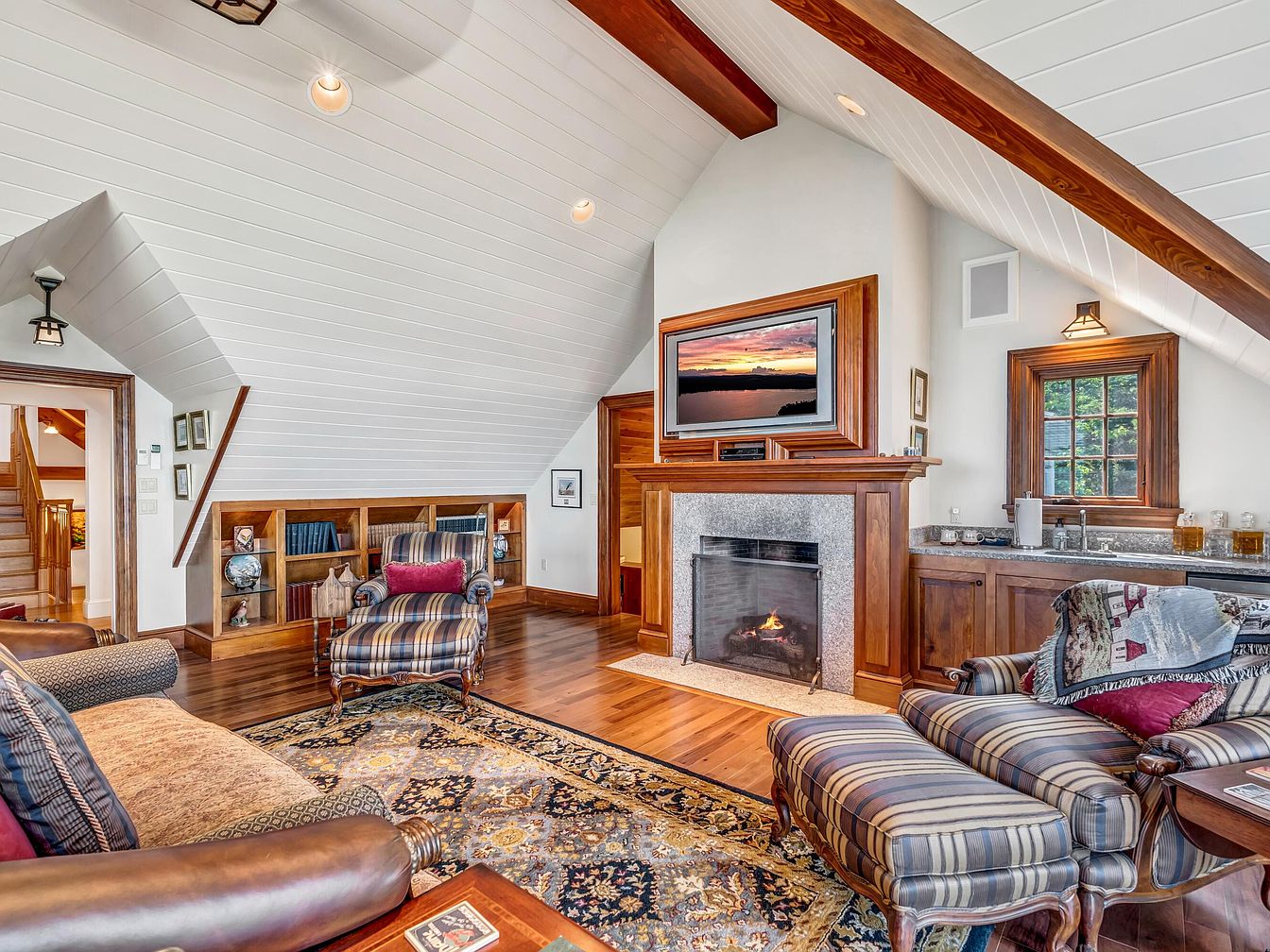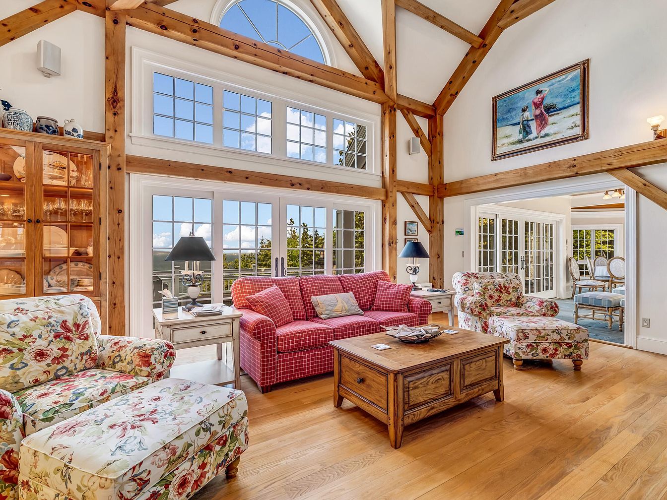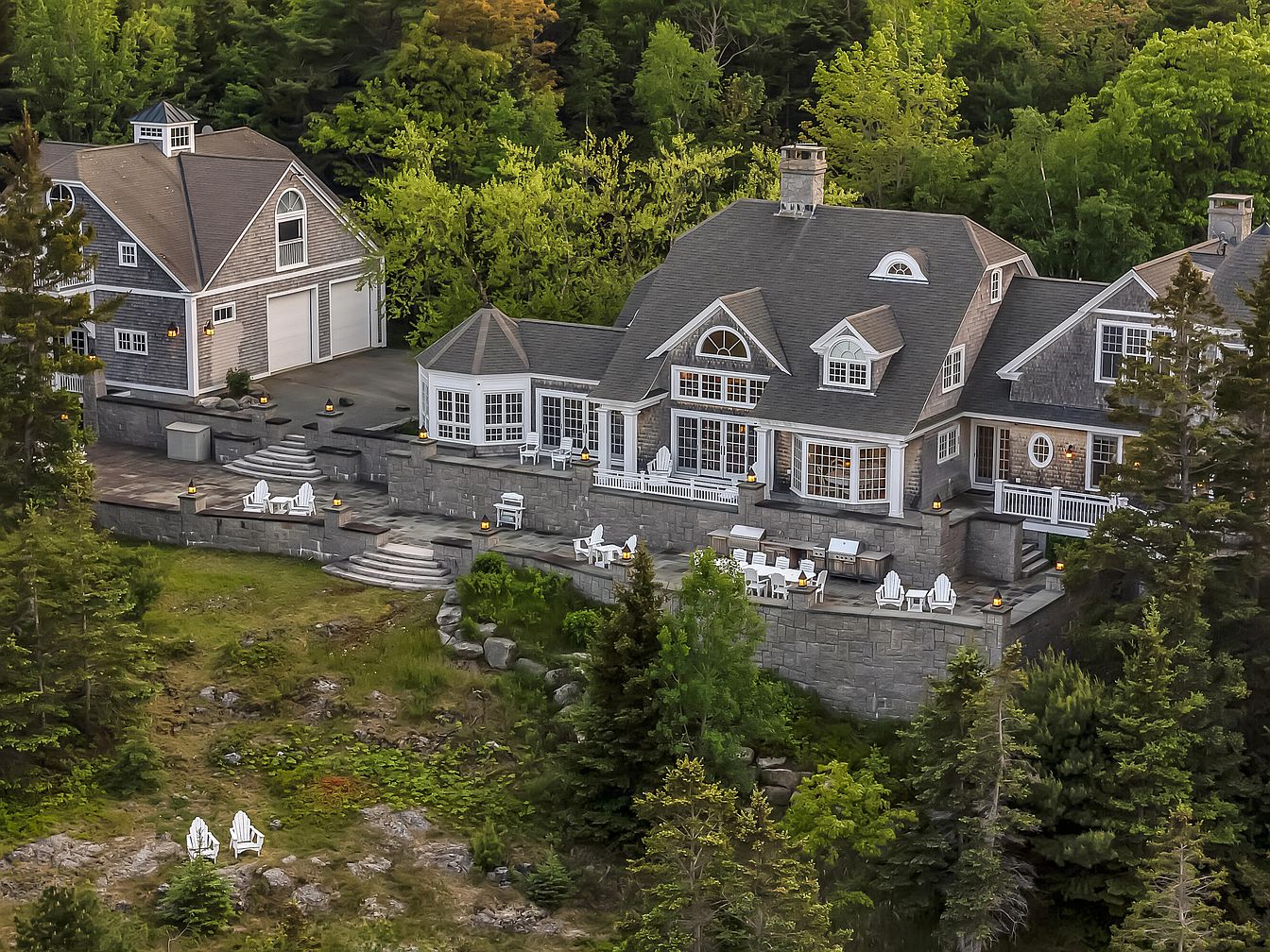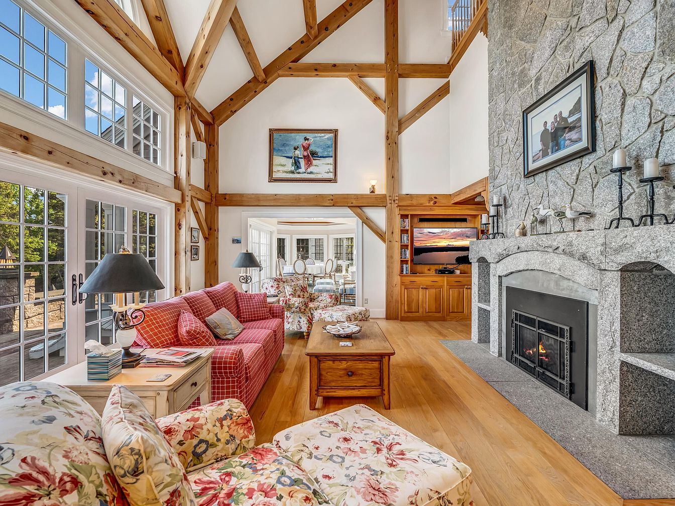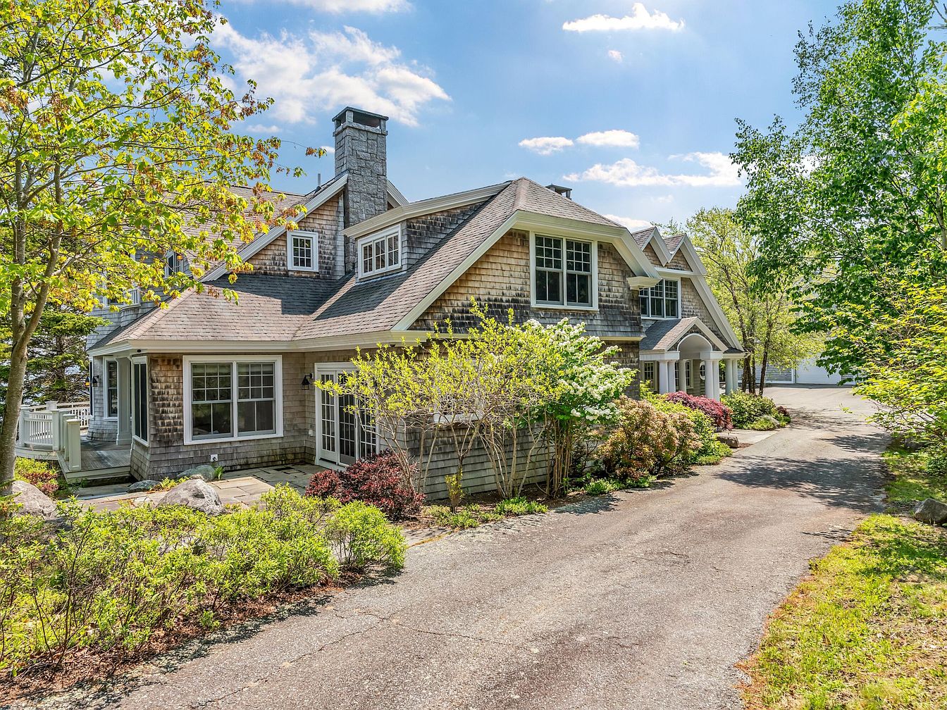 Perched high atop Sols Cliff above Frenchman Bay in Bar Harbor, ME, Eastern Watch is steeped in the historical charm of the town’s Rusticator and Gilded Age, neighboring the old estates of icons like the Vanderbilts and Kennedys. Built in 1995 and completely remodeled in 2006, this New England cottage blends John Libby timber-frame craftsmanship with breathtaking views from a 130-foot granite terrace. Offering 4 bedrooms in the main house and a carriage house apartment with a kid’s loft, it’s perfect for family life and entertaining. Direct home access to Acadia National Park trails and proximity to downtown enhance its allure. Listed at $7,400,000, this estate sits atop a bluff over 100 feet above the ocean, preserving unmatched privacy and shoreline views.
