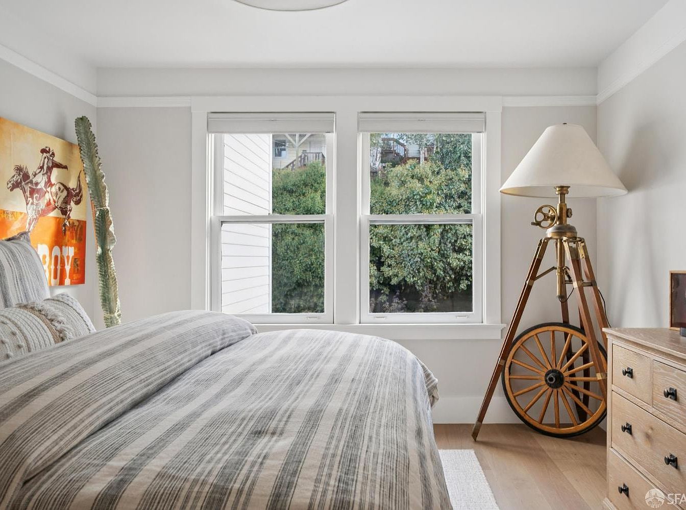 This beautifully renovated two-level home, boasting 4 bedrooms and 2.5 baths, represents the classic architectural elegance of early 20th-century San Francisco. Located directly across from iconic Dolores Park, the property has undergone significant recent renovations, enhancing its original charm while integrating modern amenities. Built in 1920, it features an open floor plan ideal for entertaining, with expansive windows providing stunning park views. The listing price is $2,600,000, covering a spacious plot area with a total of 2,200 square feet. Additionally, it includes a luxurious primary suite, private yard, one-car garage, and generous storage, making it a rare find in the bustling city, moments from restaurants and shops.
