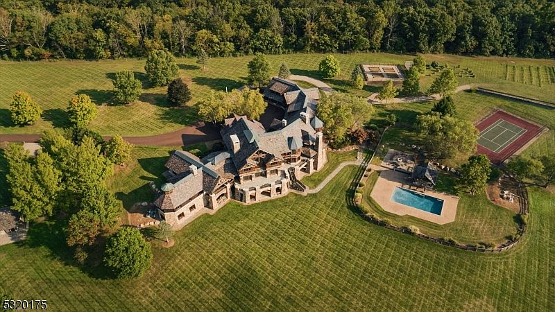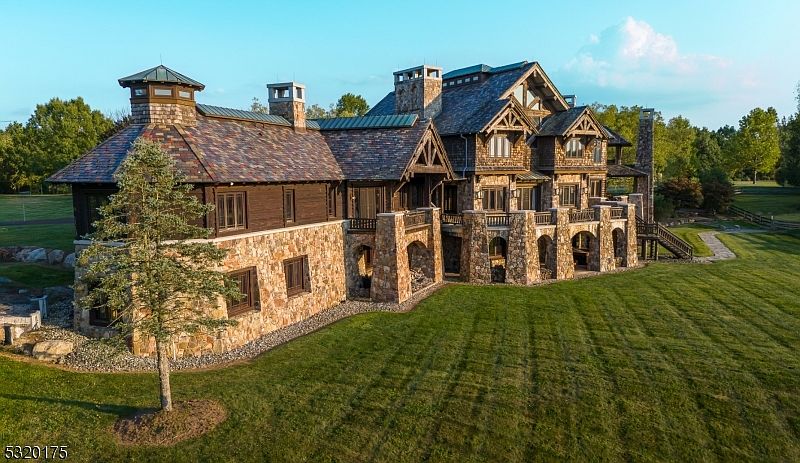 This breathtaking 25,000 sq. ft. custom-built century-style estate, completed in 2003, sits on 125 acres of rolling countryside in Milford, NJ, blending historical charm with modern luxury. Perfect for families, its 35 rooms include 7 bedrooms, 7 full baths, and 3 half baths, plus generous entertaining spaces, a chef’s kitchen, gym, indoor sports courts, spa, wine cellar, and media areas. The rustic architectural style showcases vaulted ceilings, rich woodwork, and stone accents, and recent upgrades feature sustainable elements like solar panels. With its vineyard, historic barns, and resort-style pool area, the home is ideal for equestrian pursuits or as a lavish retreat, just over an hour from NYC or Philadelphia; offered at $22,000,000.