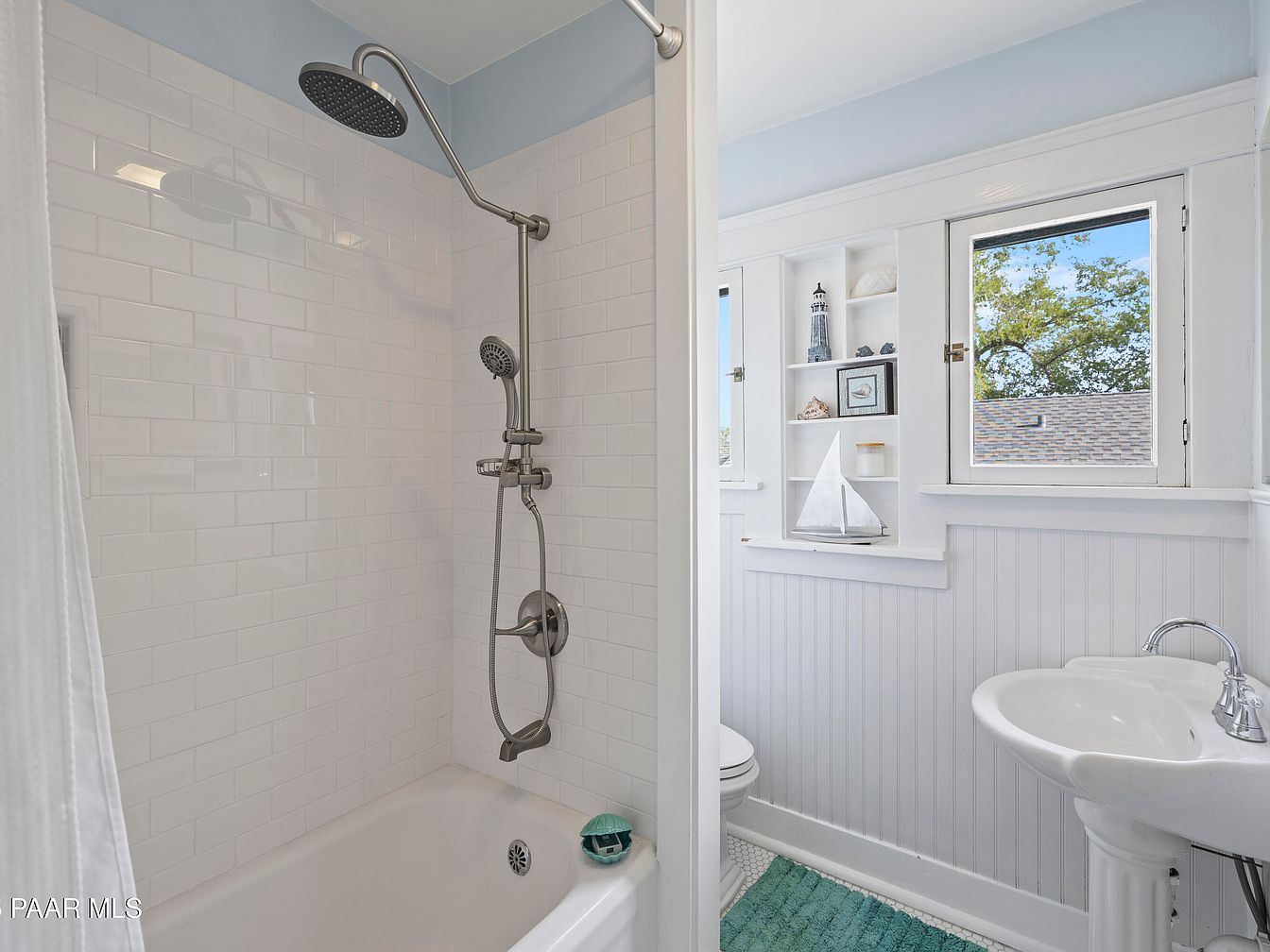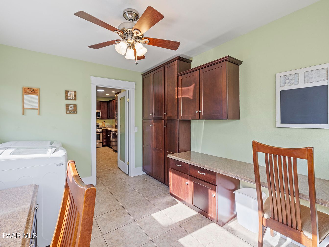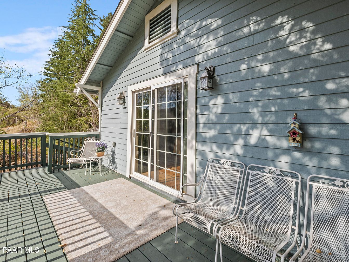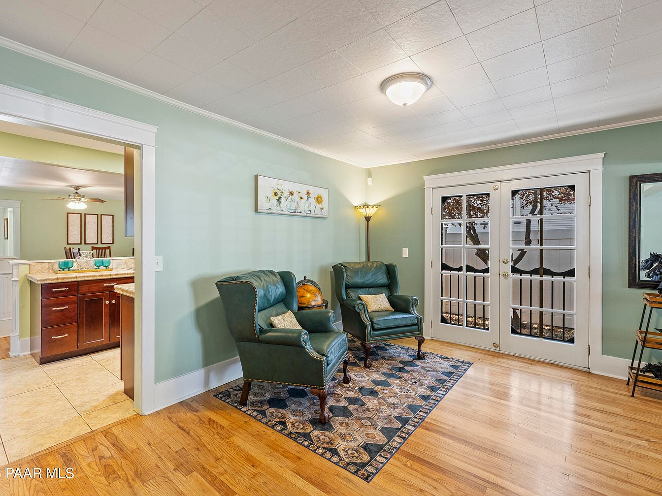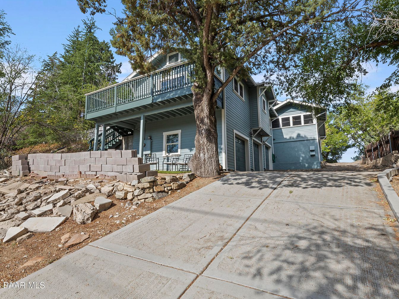 Nestled in Prescott’s Historic District, this Craftsman bungalow built in 1929 showcases historical significance melded with modern amenities. The home features classic architectural elements, including original hardwood floors, a decorative fireplace, and a striking red front door enhancing its curb appeal. Extensive renovations, including a spacious addition completed in 2006, provide modern comforts with a kitchen, family room, large laundry area, and a luxurious primary suite with a private deck. The reinforced foundation and expansive attached 3-car garage, accessible from Mt. Vernon Ave, further enhance functionality. With scenic views of Thumb Butte and a listing price of $1,180,000, this property offers a blend of historic charm and contemporary living in a picturesque location.