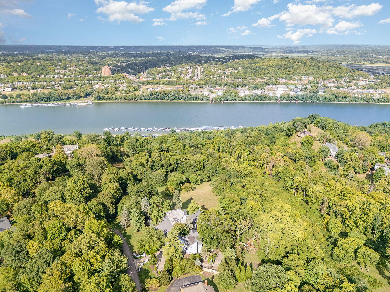 This remarkable residence, known for its historic significance, is nestled in Fort Thomas, KY, boasting picturesque views of the Ohio River. Constructed over a century ago, the home features an exquisite blend of traditional and modern architectural styles with over 10,000 square feet of living space. Sitting on a generous 1.485-acre lot, it showcases multiple formal entertaining areas, including a two-story glass-enclosed atrium and a spacious great room centered around a grand fireplace. Recent renovations have enhanced its luxurious appeal, all while retaining its character. Priced at $2,195,000, this landmark property offers a finished lower level, a potential carriage house, and endless possibilities for visionary owners.