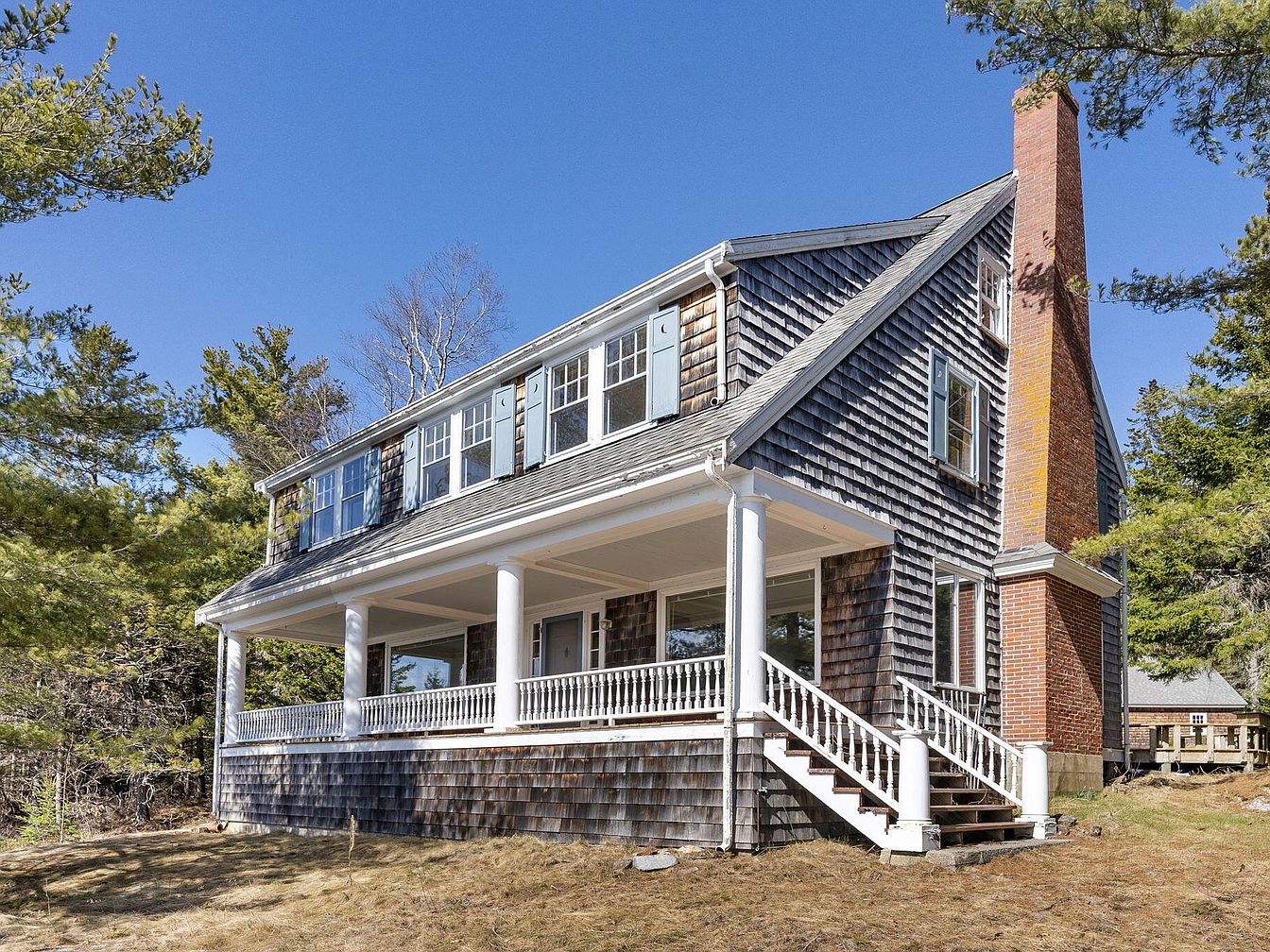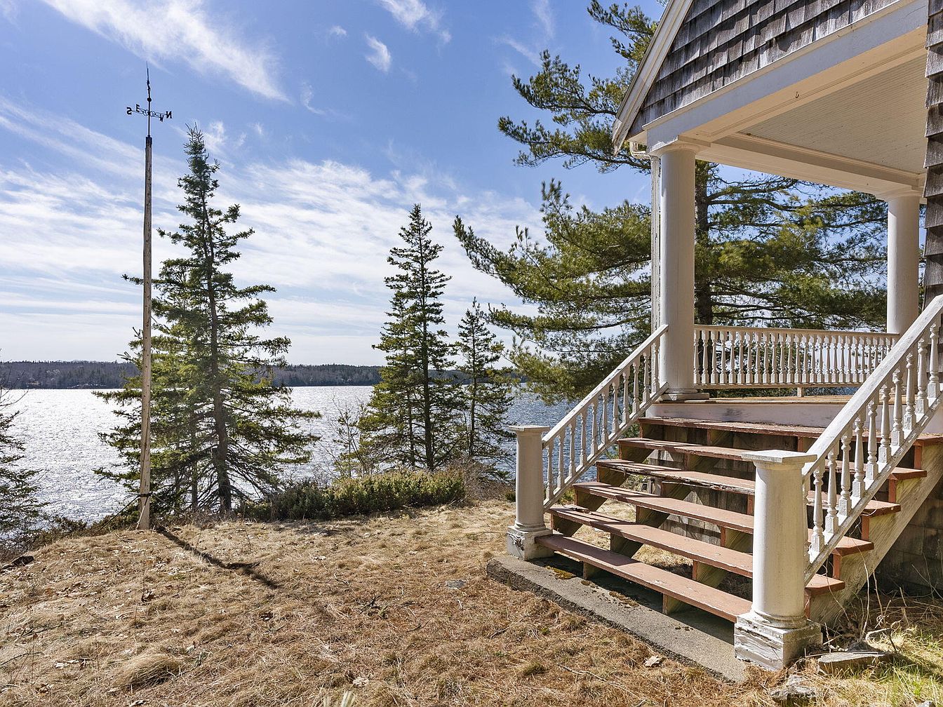 The Dutton Estate, a captivating Cape-style home in Sargentville, ME, sits majestically on 7.5 wooded acres, offering stunning views over Eggemoggin Reach. Built during the 20th century, this historical property features 6 spacious bedrooms and 4 bathrooms across three levels, showcasing exquisite period moldings and ample natural light through large windows. Recent renovations enhance its charm while preserving original aesthetics. The listing price is set at $1,350,000, and the estate encompasses a generous plot area. A notable detached barn with bi-folding doors provides fantastic storage and workspace, nestled amidst pristine, wild grounds populated by mature evergreens. Ideally located for access to Blue Hill, Deer Isle, and Acadia National Park, this estate is a rare find.