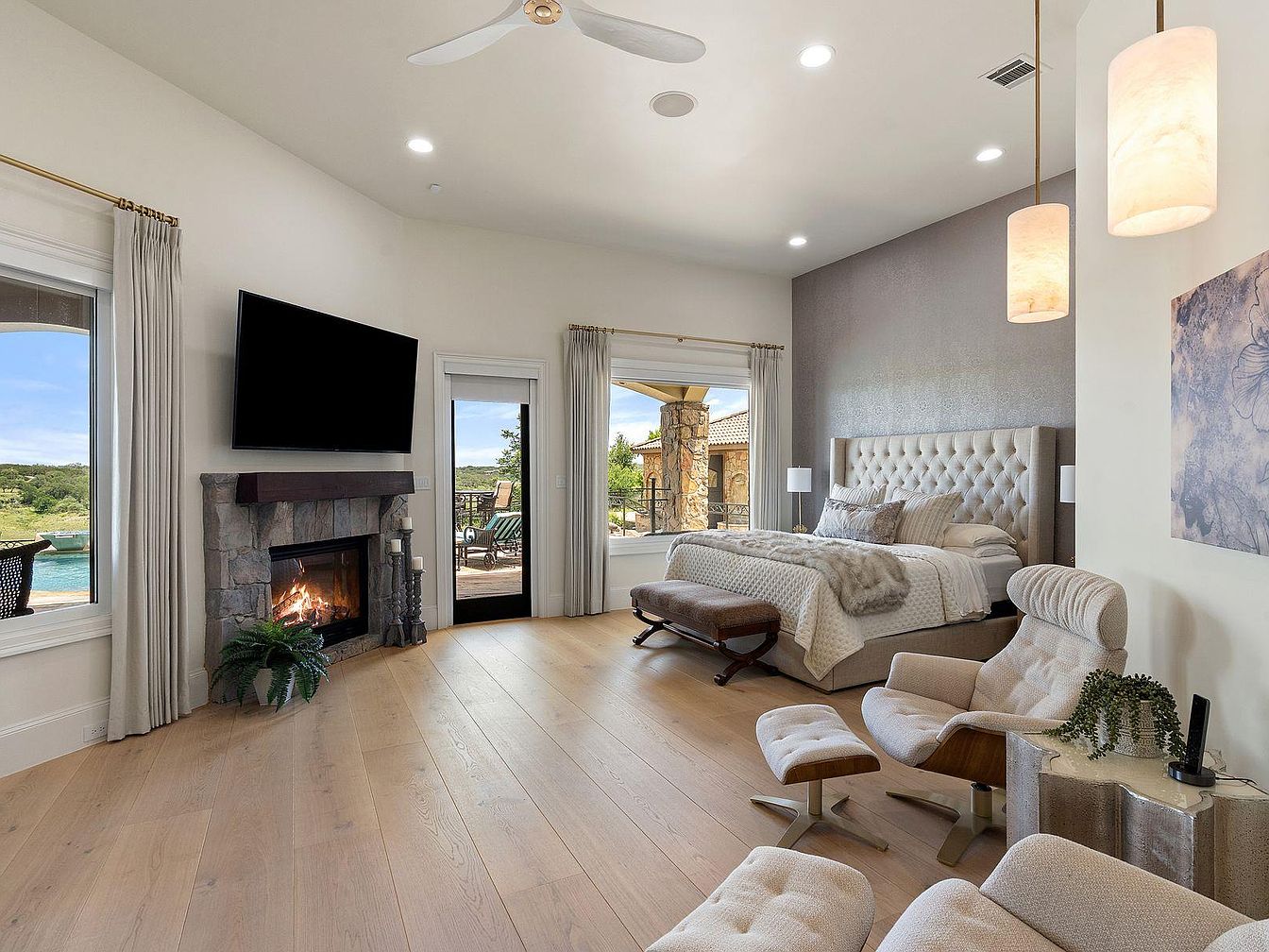 This stunning lakefront estate in the exclusive gated Travis Bluff neighborhood of Spicewood, TX, exudes Mediterranean architectural elegance with its stone exterior and classic tile roofing. Overlooking Lake Travis from a bluff, the 11,459 sq ft, three-story home, built on a premium plot with private tram and boat dock, offers unparalleled family luxury and entertaining space. With seven bedroom suites, elevator access, Savant smart home technology, and amenities like a home theater, executive office, newly redesigned pool and spa, and expansive outdoor entertaining areas, it’s perfectly suited for modern family living. Recent innovations include updated recreation spaces and a state-of-the-art dock. Listed at $5,850,000, this residence delivers both exclusivity and comfort near top golf courses and vineyards.