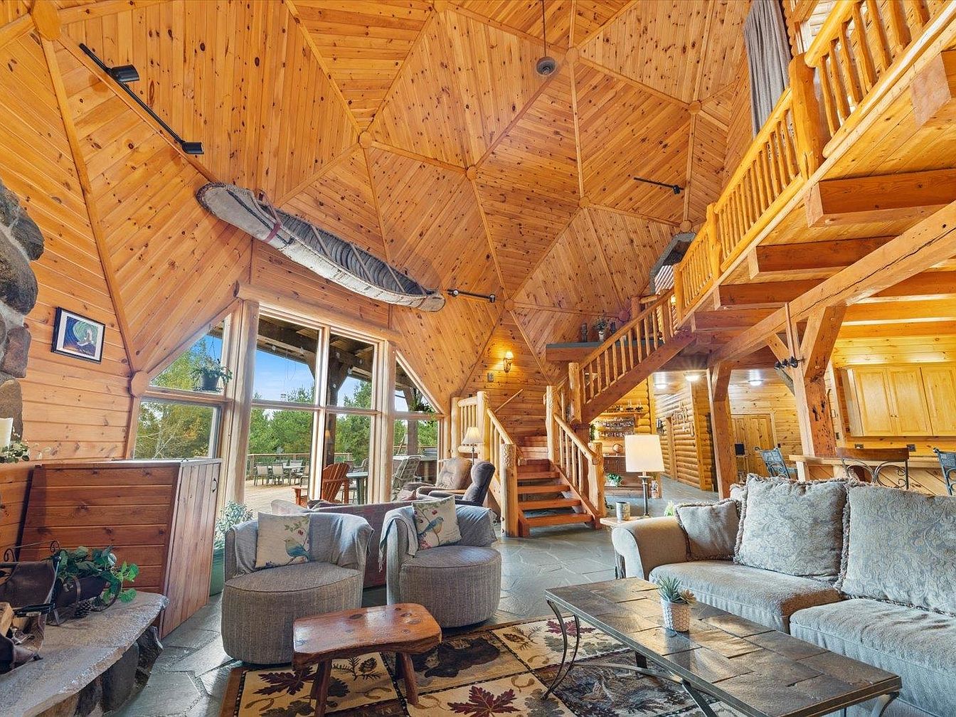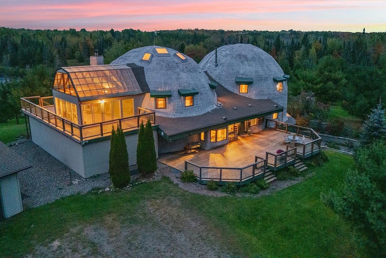 This one-of-a-kind concrete geodesic dome estate, set on 121 private acres in Sturgeon Lake, Minnesota, offers a rare blend of innovative architectural history and modern family living. With over 9,000 sq ft of light-filled living space, 8 bedrooms, and 7 baths, this home is perfect for multi-generational families or entertaining on a grand scale. Designed with comfort and recreation in mind, the property features heated floors, an indoor sports room, a sauna, private pond, and expansive decks for year-round enjoyment. Showcasing elegant Douglas Fir beams and pine tongue-and-groove finishes, the estate embraces Minnesota’s natural beauty while fostering connection and tranquility. Listed at $3,500,000, it stands as an iconic legacy property ready for your family’s next adventure.