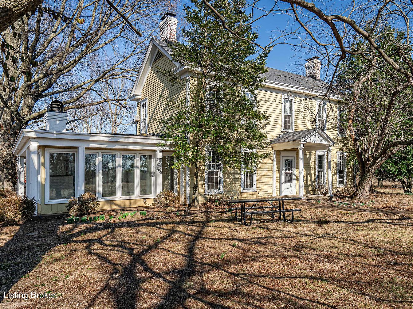 This exceptional property in Prospect, Kentucky, offers a rare chance to own a century home built in 1900, nestled on a sprawling 9.7+ acre plot secured by a conservation easement. The main yellow-frame residence exhibits classic farmhouse styling, complemented by extensive grounds featuring two barns, a repurposed smokehouse studio, and an additional manager’s cottage with a traditional log cabin great room and massive stone fireplace. Steeped in historical charm, the home embodies the tranquil privacy of a country estate, yet remains less than 15 miles from downtown Louisville. Recently used for retreats, it’s listed for $2,750,000 as appraised, though total square footage is not specified. The property is shown strictly by appointment, maintaining its secluded allure.
