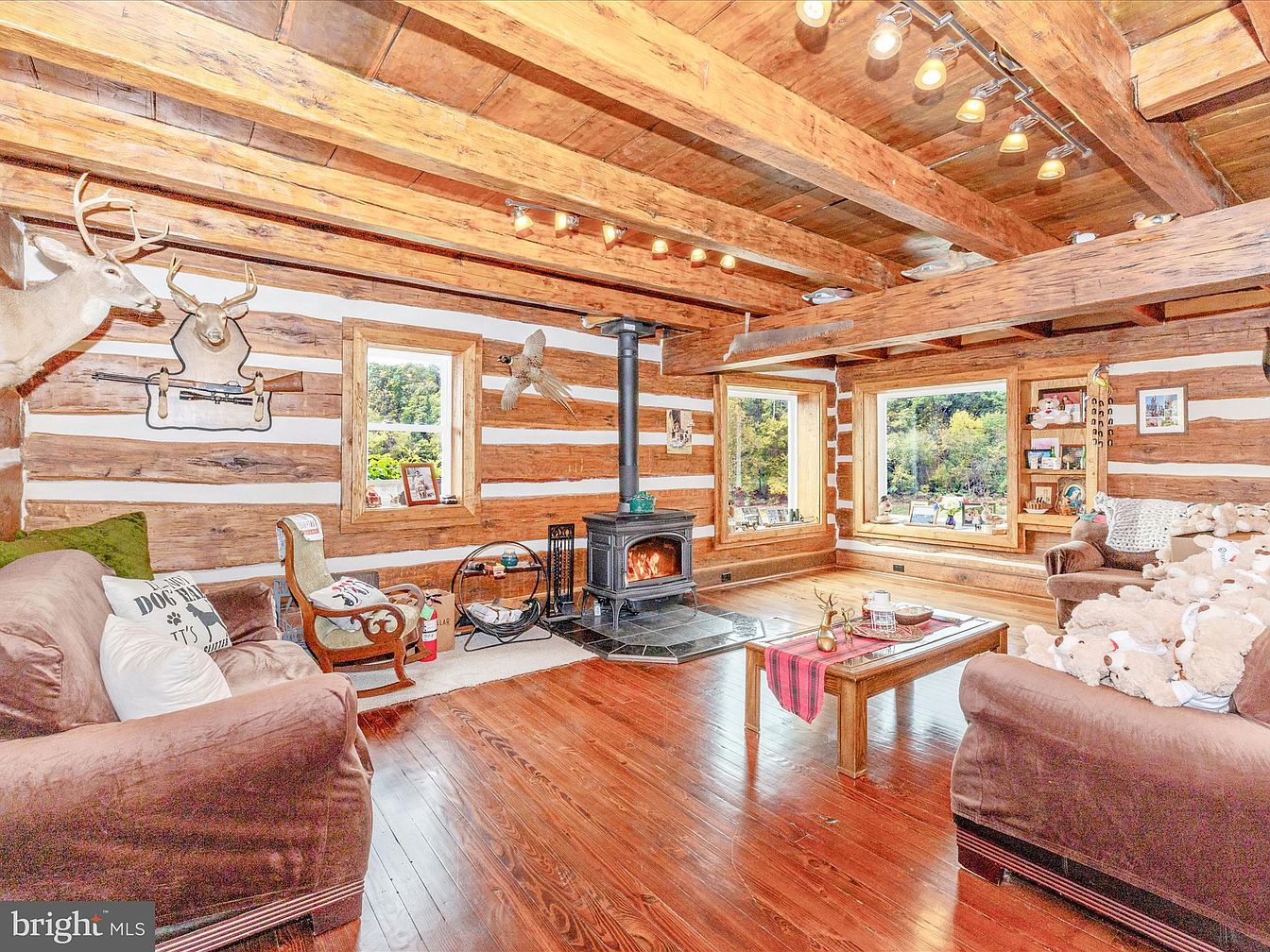 This picturesque property spans 83 acres in Woodsboro, MD, featuring a thoughtfully renovated log home, a spacious barn, and additional functional structures. Historically significant, the home reflects classic log cabin architecture fused with modern amenities, showcasing the evolution of rural living. It is set against a backdrop of beautiful countryside, ideal for hunting with ten custom blinds for a premier experience. Recently renovated, the home offers comfortable living space with potential for further development, as it includes five ag cluster rights. Listed at $2,150,000, the expansive grounds enhance its appeal as either a tranquil retreat or a hunter’s paradise, making it a unique blend of modern functionality and historical charm.