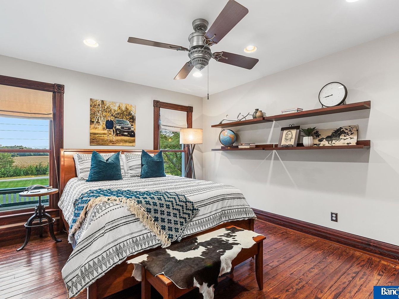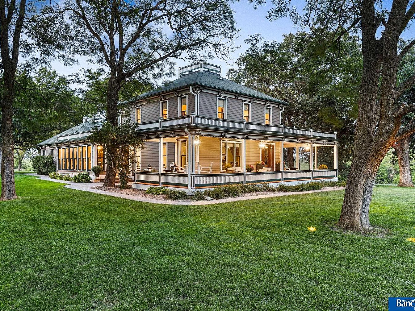 Nestled in Hickman, NE, this exquisite century home combines historical significance with contemporary luxury, set on a sprawling 7.5 acres. Built in a classic architectural style, it features 7 spacious bedrooms and 5 bathrooms, showcasing impeccable craftsmanship with detailed ceilings and four fireplaces. Recent renovations enhance its charm, while the sunroom offers serene views of the one-acre pond. The property includes a versatile Sand Creek barn, ideal for events or personal use, contributing to its unique allure. Listed at $1,950,000, the estate not only promises unmatched luxury but also the potential to acquire an additional 7 acres, presenting endless possibilities for modern living within a rich historical context.
