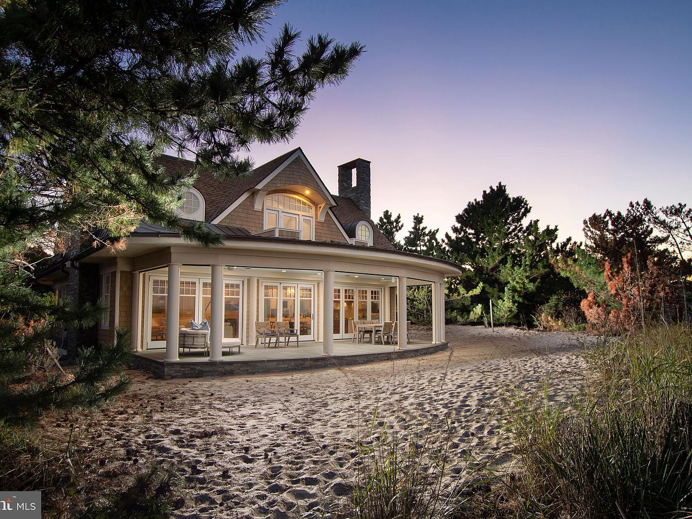 This exquisite custom-built home in Lewes, Delaware, offers breathtaking panoramic bay views and embodies sophisticated coastal architecture, reminiscent of shingle-style century homes but constructed just six years ago. The house features expansive, open-concept living spaces, a gourmet kitchen with luxury appliances, and cutting-edge home automation, seamlessly blending classic charm with modern amenities. Residents enjoy extraordinary outdoor living with an indoor/outdoor patio, motorized screens, and an owner’s suite boasting hardwood floors and private water-view balcony. Ideally situated on the Delaware Bay, close to the Lewes Yacht Club, the property stands on a generous plot with additional 500 sq ft of screened porch. Listed at $5,575,000, it is the pinnacle of contemporary beachfront elegance.