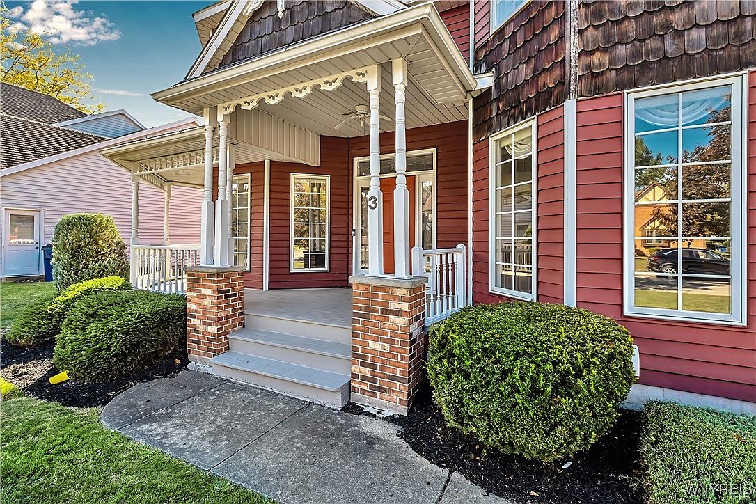 This gracious Victorian home in the newer section of Ransom Oaks, East Amherst, NY, beautifully blends historical charm with modern family living. Built with timeless architectural flourishes like a wraparound porch and coffered ceilings, the house features spacious rooms filled with natural light, perfect for gatherings. Upgrades add comfort and convenience: fresh paint, LVT flooring, advanced lighting, high-end finished lower level, and an updated electric box (2024). The oak kitchen, fireplace, and extensive built-ins highlight quality throughout. Set on a cul-de-sac, the home offers a fabulous kids’ playground and access to community pools, tennis, and walking trails. Listed at $425,000, this inviting home combines classic elegance, an active neighborhood, and outstanding family amenities. Square footage and plot details are available upon request.