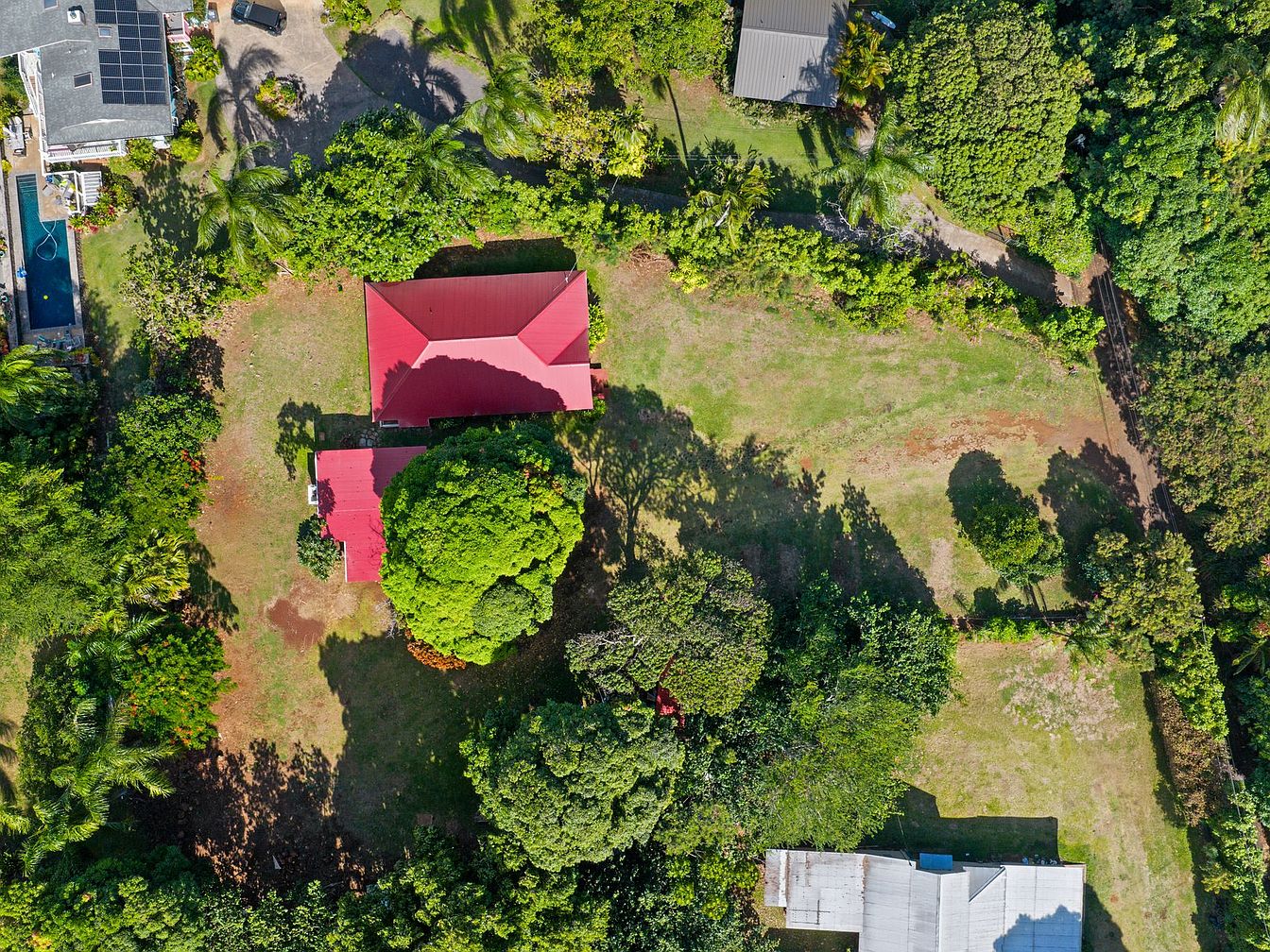 This beautifully updated 1920s-era residence in Koloa, Hawaii, is a rare opportunity to own a piece of “old Hawaiʻi.” Set on nearly an acre—split between a 25,977 sq ft main lot and a private 11,048 sq ft parcel—the property is a classic plantation-style home with three bedrooms, open floor plan, and a charming front porch. Recent renovations include a new roof, floors, paint, and windows, blending historic charm with modern comfort. Priced at $2,599,900, this serene, tree-shaded oasis is just minutes from Historic Old Kōloa Town and Poʻipū Beach, ideal for multi-generational living or investment. The lush landscape features mature avocado and mango trees, capturing the tranquility and rich heritage of this unique Hawaiian locale.